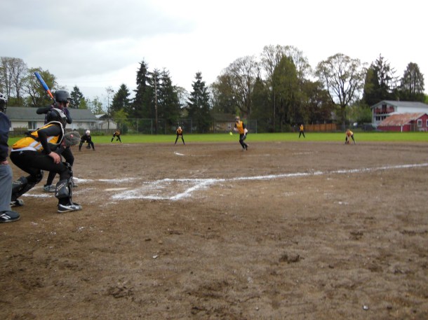 Lydia played in her first softball game of the season this afternoon. She pitched all but one inning of the game. Though she didn’t get any hits, her team won 16-9. It was a rocky start because she didn’t have a backup pitcher in case things went south, so she was understandably nervous. More nervous, however, was her mother Jennifer. I thought she was going to throw up for a little bit. Thankfully, she had to leave after a couple of inning, Lydia’s worst, to attend to another commitment. Diane and I stayed to make sure Lydia won. It was a fun game to watch, but the other team came out strong, giving us cause for concern. Lydia was worried about the other pitcher, Abby, who everyone thought was pretty hot. She did throw lots of strikes early on, but faded in the stretch. Lydia, however, started badly, hit 3-4 batters, then got her stride and was stronger at the end. She was relieved in the 4th inning by a teammate, Gabby, who wasn’t expected to show up because she’s been sick for a week. She got through one inning before having to quit, so Lydia returned.