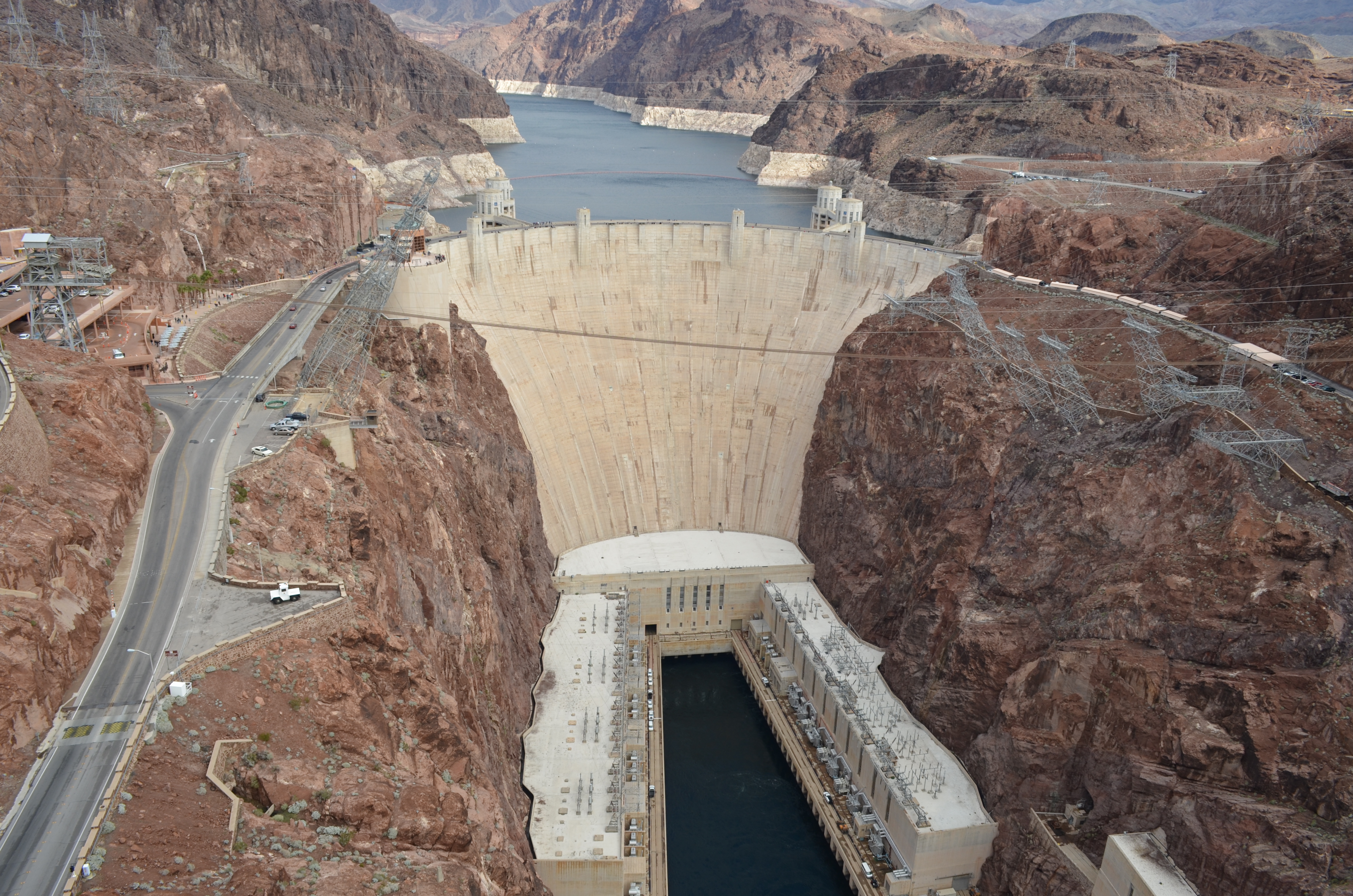 After a good night’s sleep, we departed, heading south on Highway 93. That took us across the Pat Tillman Bridge that spans the Colorado River, just downstream of the Hoover Dam. We stopped short of the bridge, however, so we could take Jim out on the bridge for a view of the Hoover Dam that he’s never seen before. To get to the bridge required a fairly long climb so we could trek out to the middle. Diane stayed in the car which was a smart move. The wind was blowing at least 90 mph, making it difficult to walk. But, we did it, and I got some got pictures of the dam. Jim seemed to enjoy it but didn’t say much because he was out of breath.