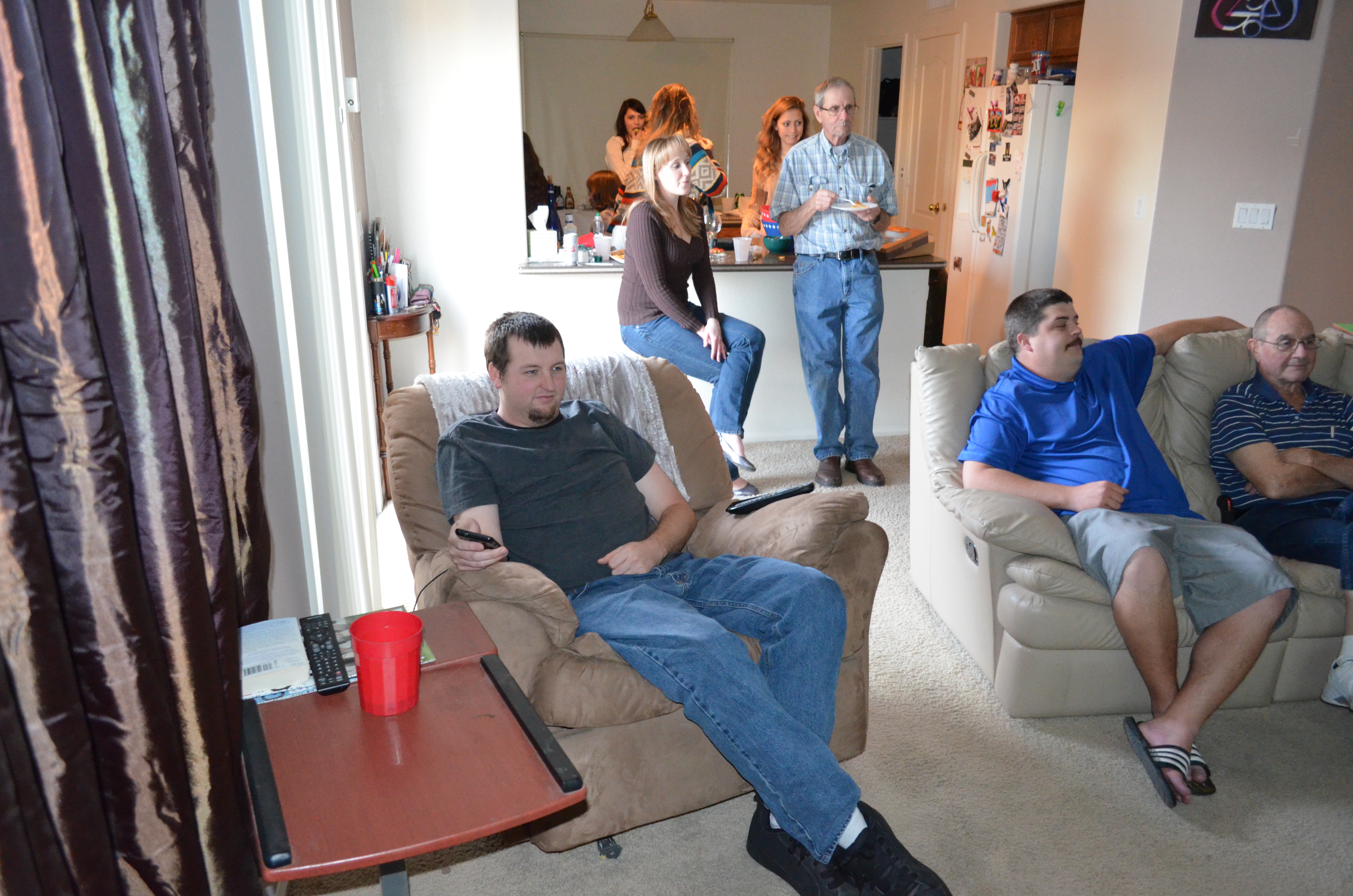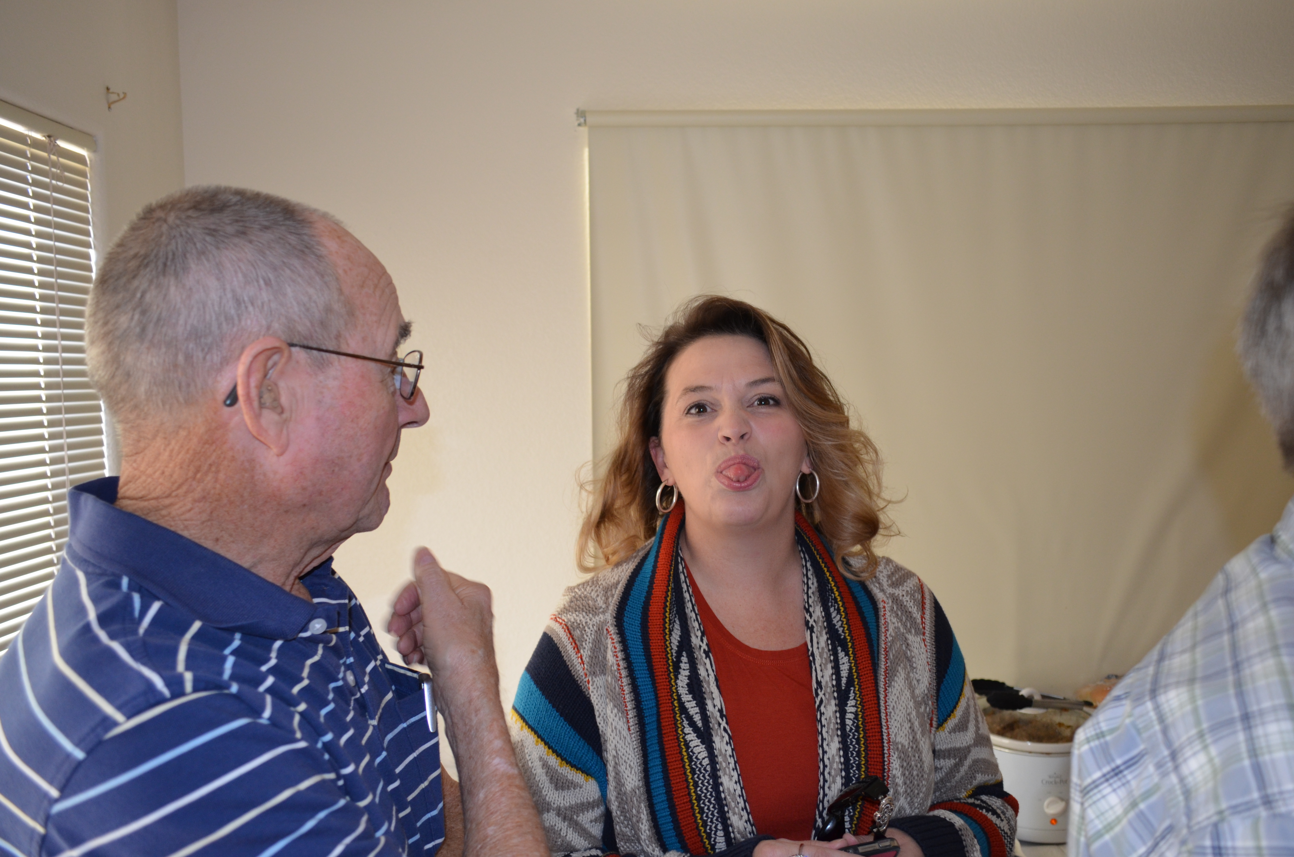 This morning Diane and I got up early so we could join everyone for church at Happy Trails. It was their Cantata, and it was absolutely wonderful. The church was full, with hundreds of people. After Church we took Jim and fiddled around a little before heading south to Brian’s for the party. The party was wonderful. We got to meet all of Brian’s family that includes Steve (Step Dad), Keithena (Mom), Brent, Bronte, Brooke, Brene, Breezy, Breven, and Bridgett. The last six are his sisters. A very good looking group of kids, including Brian, who range from 9 to 28 years old. Eight of them.