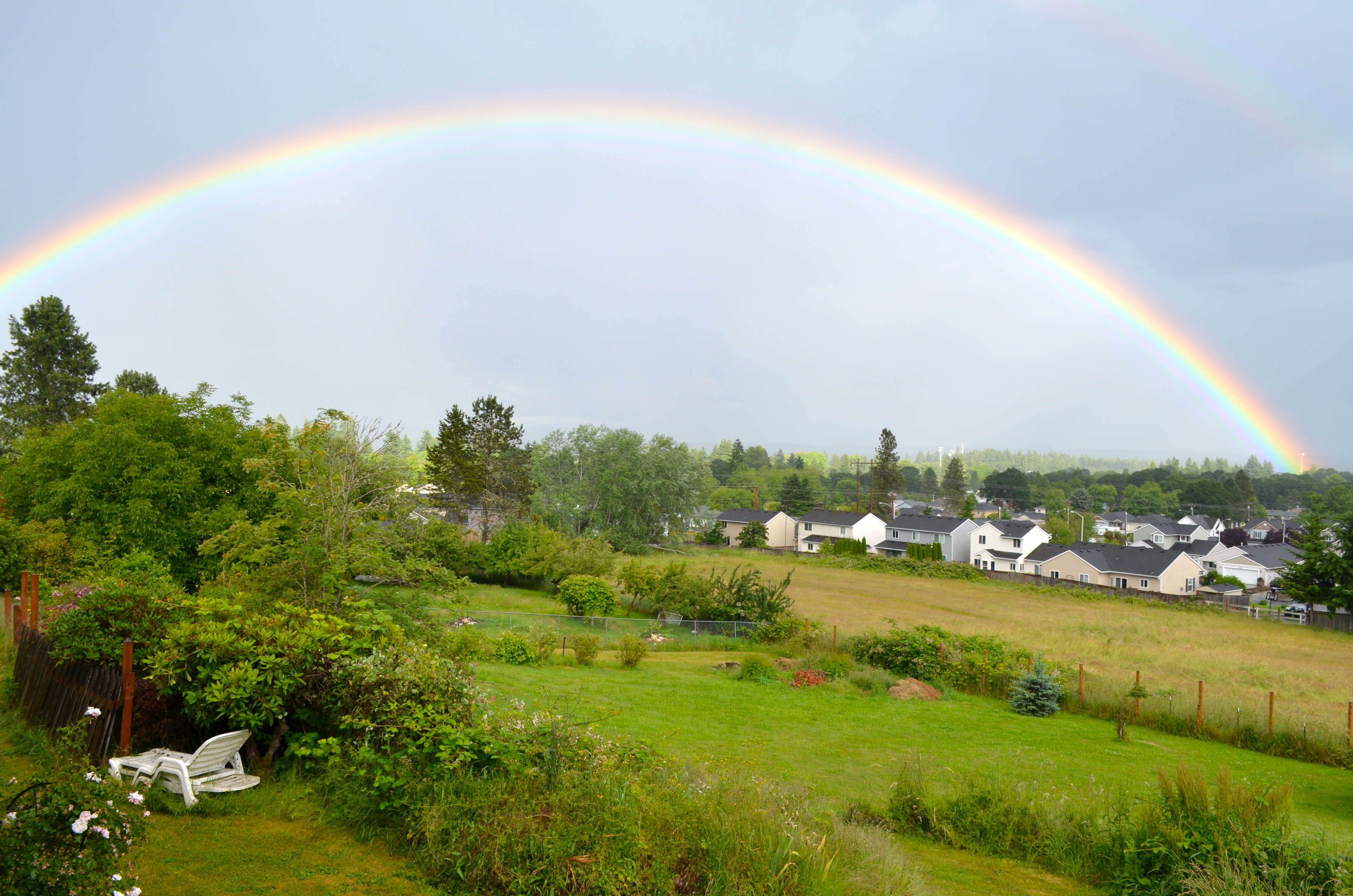 So, I shall quit, leaving you with this rainbow that invaded our back yard in as the storm passed over.