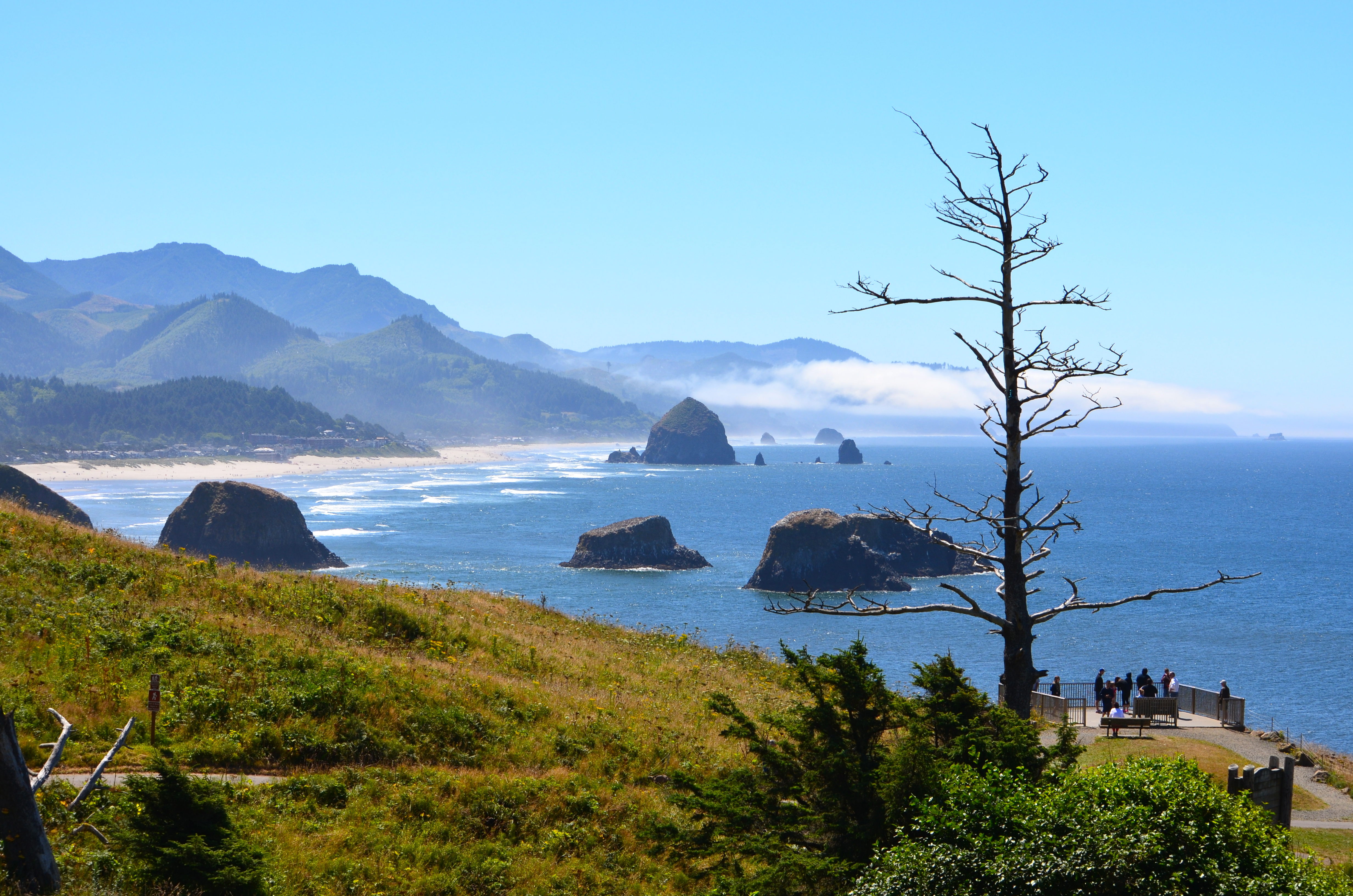 Ecola State Park gives people an excellent view of Cannon Beach, the town, and Cannon Beach, the beach, as well as Haystack Rock and other smaller affiliated rocks that stick up out of the ocean. Very picturesque.