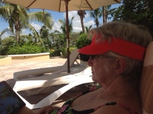 After getting up, and having a very expensive breakfast of simple toast, coffee, and cereal, we donned our swim wear, under which we are naked, and trekked to the pool next to our building and spent a delightful two hours laying in the shade, floating in the pool, and visiting with other guests. Specifically, we talked with Claire & Meredith who are from Houston but have a marked British accent. We met them yesterday at the pool and learned that Claire, at least, is definitely a British native who has lived in Houston for the past 8 years. It would have been excellent if her British accent also had a Texas drawl, don’t you think. We actually touched on that subject yesterday, but I left that alone today. Also at the pool were Mike, retired Navy, and his wife, who gave me her name but apparently took it back because I can’t remember it. Neither can Diane.