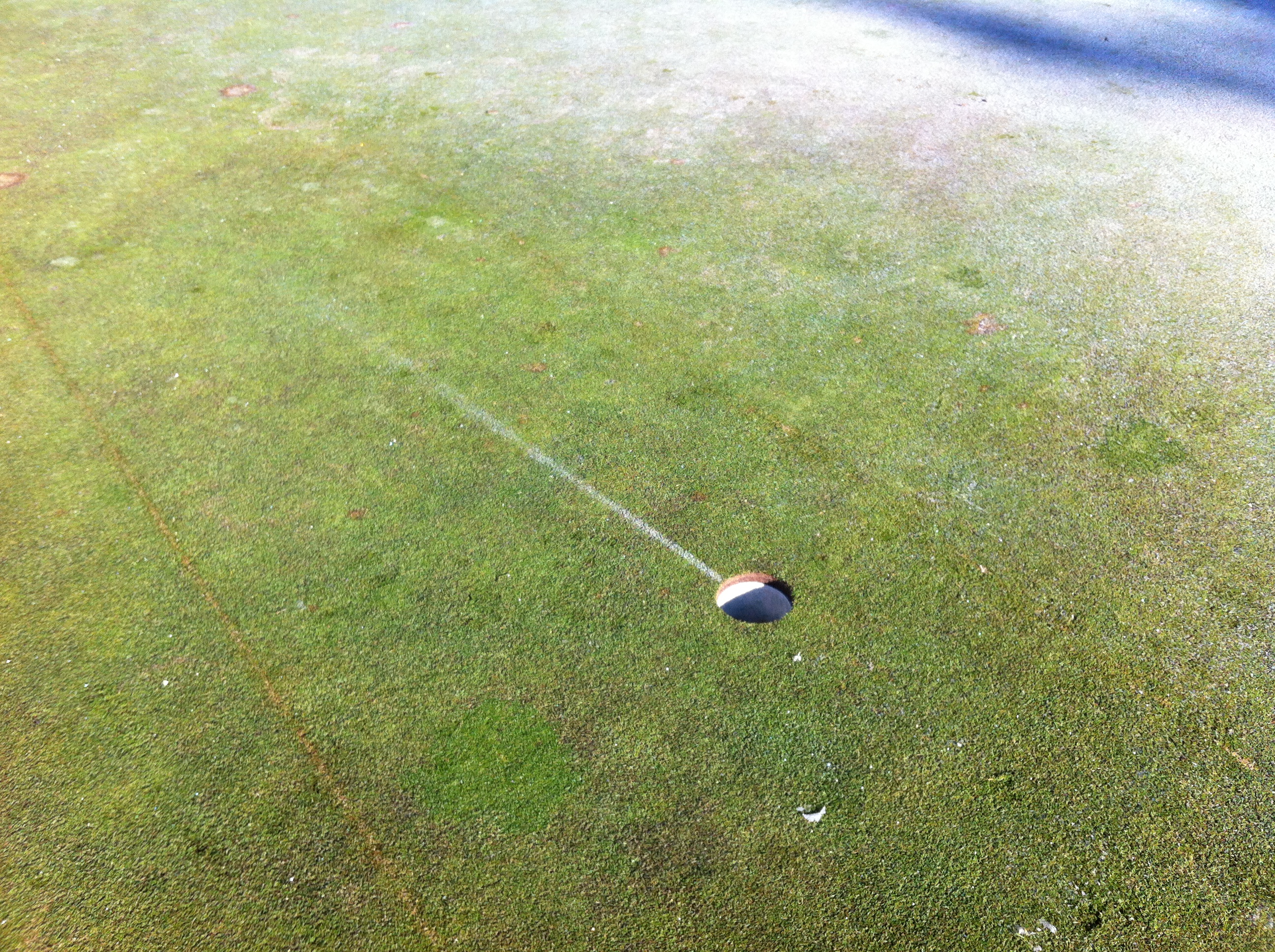 This was interesting … it’s a line of frost going directly away from the hole which was in the shadow of the pin. Pretty cool.
