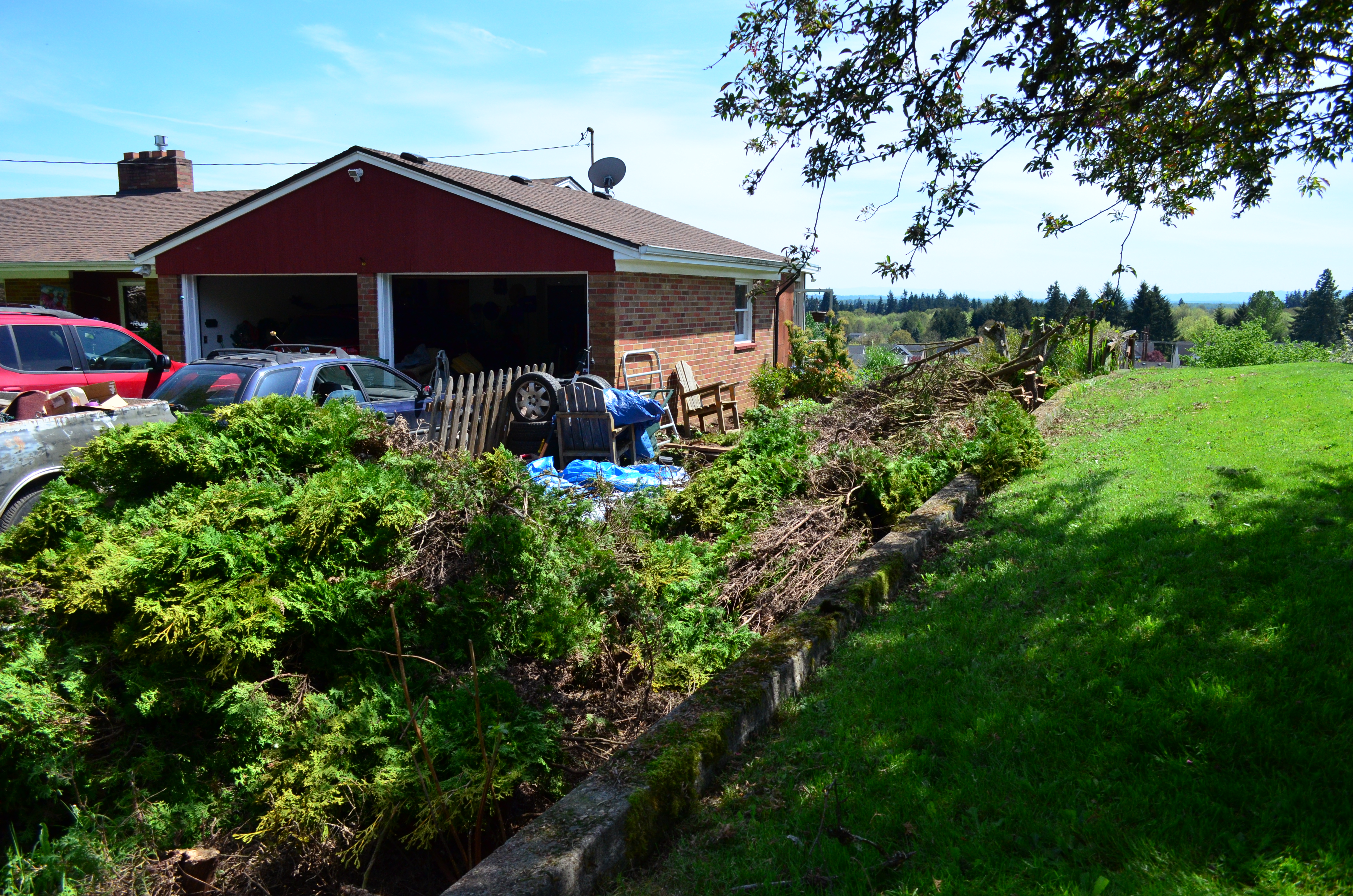Here’s what the west side of the house looked like after a whacked down the overgrown, unkempt trees.