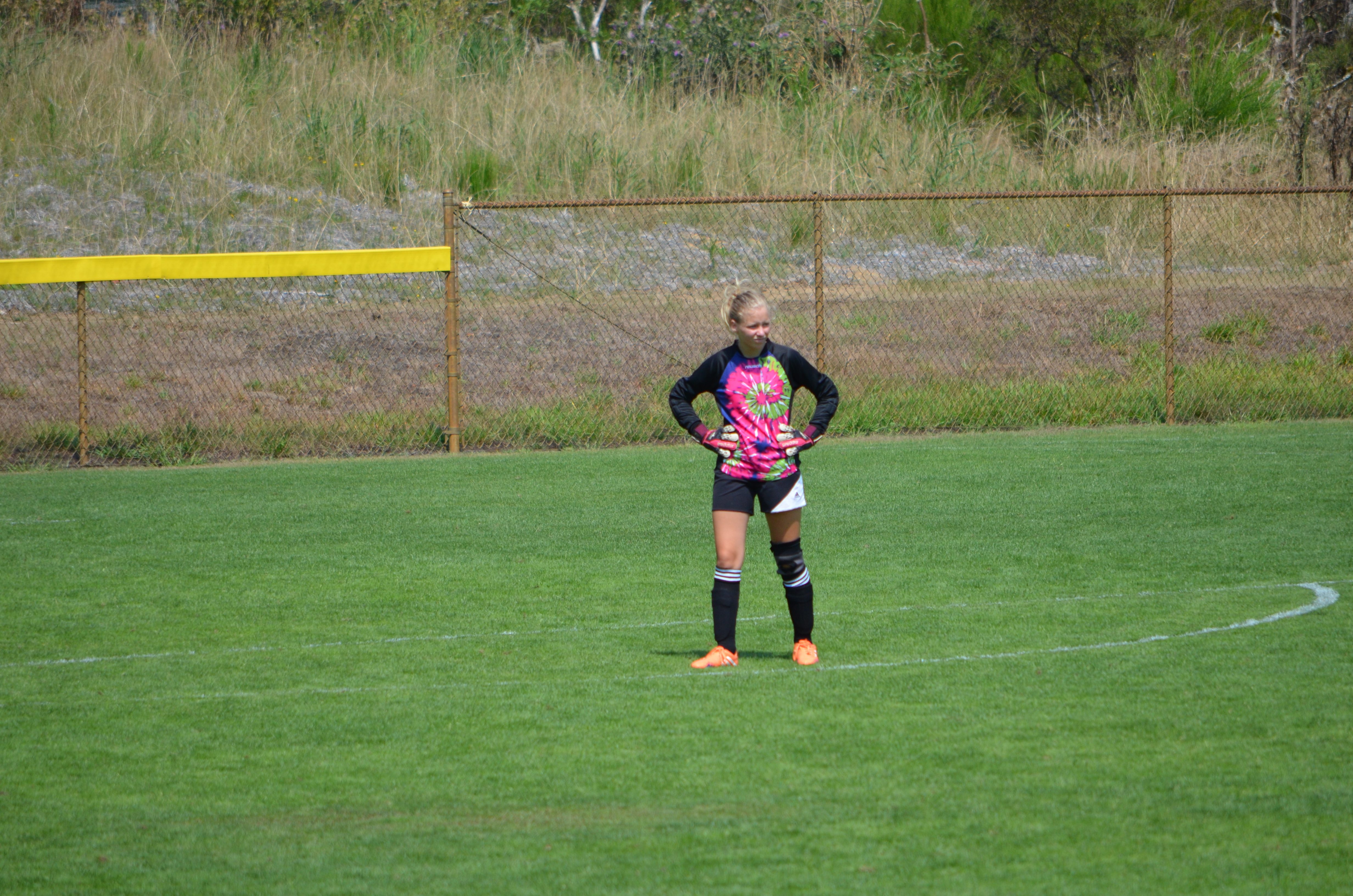 Then we drove to Astoria, arriving late, but before half time, of Lydia’s first game. I’ve mentioned previously that she’s a goalie and today she spent a lot of time during the first game doing this …
