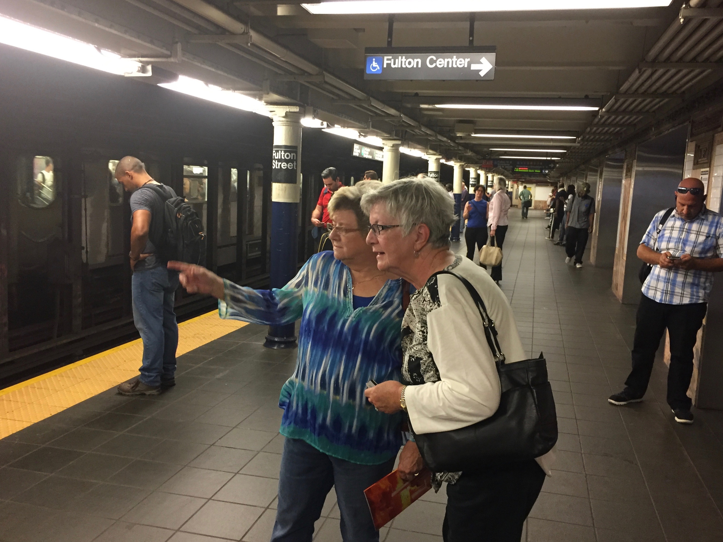 This is Ruth pointing out the seat she was going to grab when the subway doors opened up. I believe, however, that no one got off the #4 Train which required us all to stand for the beginning of the trip. I had to stand the entire way, but it was OK. I didn’t fall down. I had an opportunity to get a seat at one stop because I was standing right by one that was vacated. I young man standing in front of it made a move for it, then looked up and offered it to me. I gave it to Diane. Chivalry is not dead in NYC. I was pleased and let him know how grateful I was.