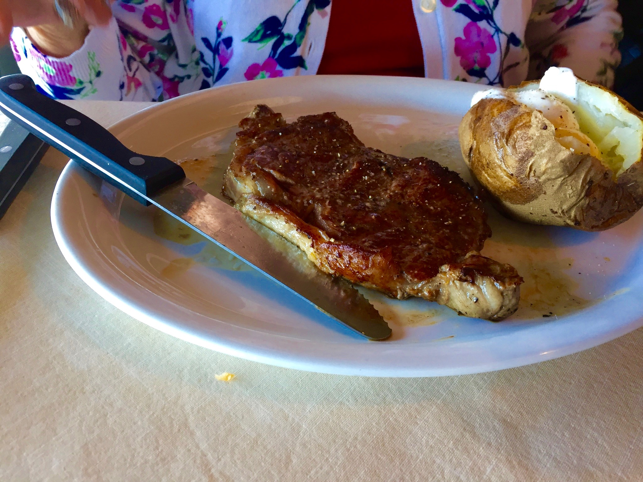 Since we only have a two burner stove, it was tricky getting it all done in a manner that nothing got cold. Since eggs were last, Diane stacked everything else in the microwave to keep them warm. When the eggs looked done enough to eat I flung a few pieces of cheddar cheese on top and put a lid on until it melted a little. I’d already turned the burner off but hat was just long enough for the bottom of the eggs to crisp up more than I had intended.