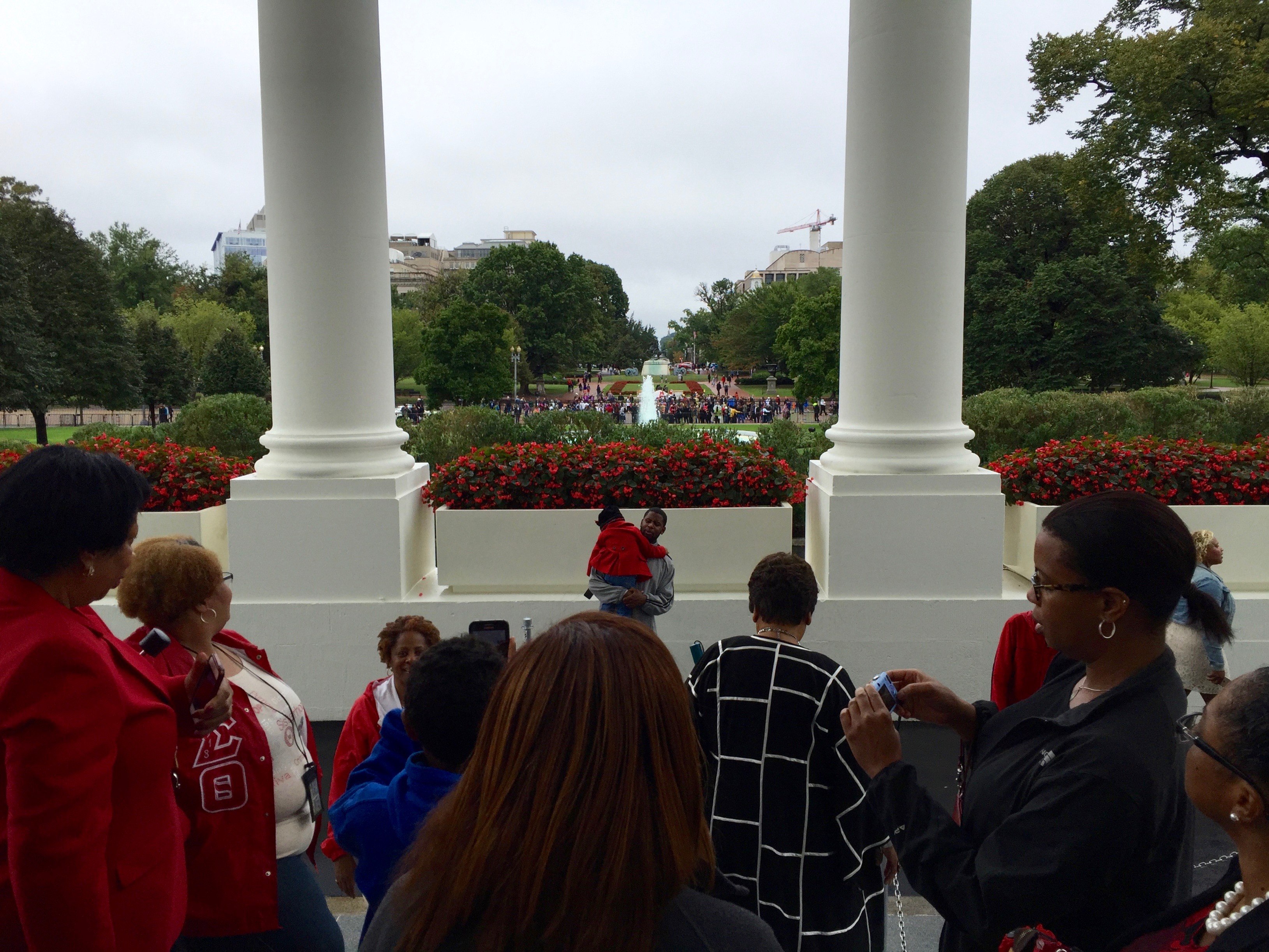 From The Ebbitt we hoofed our way down to the spot where vetted tourist are allowed to enter the White House. Turns out there are hundreds of folks who get approved to visit the White House every day and they keep the Secret Service agents busy checking IDs against their lists.