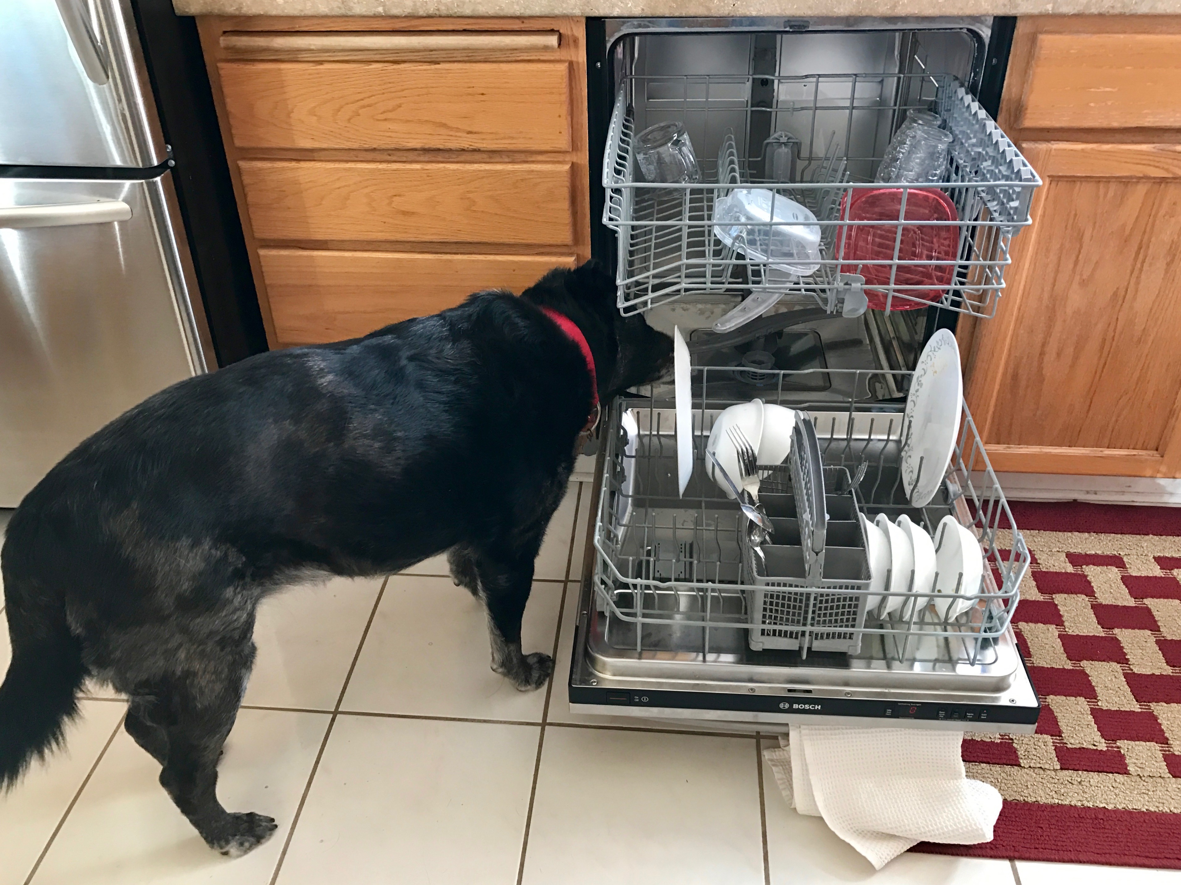After it was all done we had a snack and Diane loaded the dishwasher. Whenever the dishwasher is opened, Ziva shows up so she can prewash the plates, something that she was trained for as a small dog. Personally, I think all dogs inherently know that plates need to be prewashed so it’s not a large training curve. It’s kind of instinctive, actually. They just know what to do. Additionally, when the dishes are clean, and the door is open, she checks all the plates to make sure they’re clean. She’s very helpful.