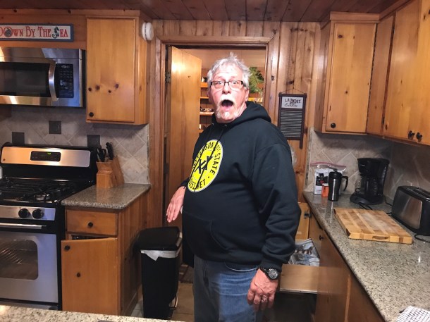 That happened Friday morning, shortly before lunch, so we can verify to the masses that Kevin actually exists. He’s not a figment of Kathie’s imagination. He was a little surprised that his cover had been blown.
