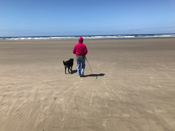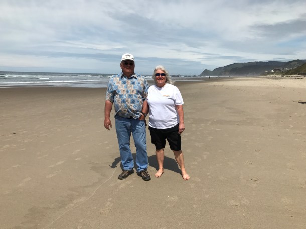 Diane stopped at the Newport Fred Meyer for gas, but they didn’t have a gas station, so she bought some food and candy for us. Then we went a little further south to a Shell station that honored our Fred Meyer card. Saved $2.05. Then we went back to the trailer and took a nice walk in the sun. I didn’t mention that it was sunny, did I? It was.