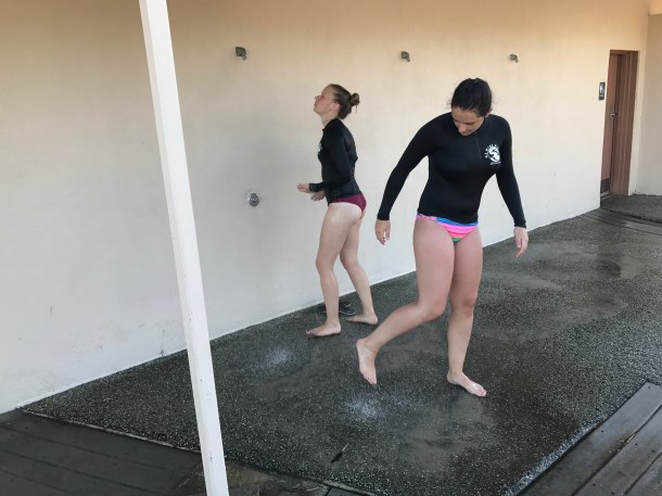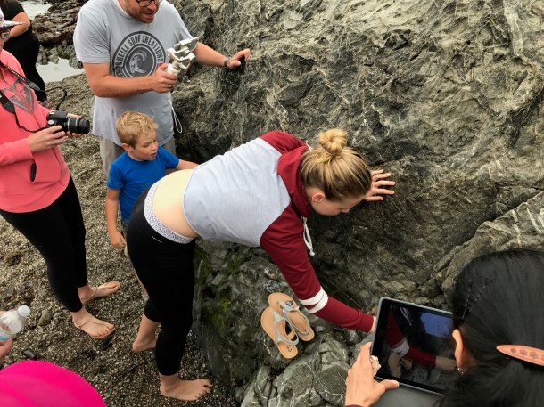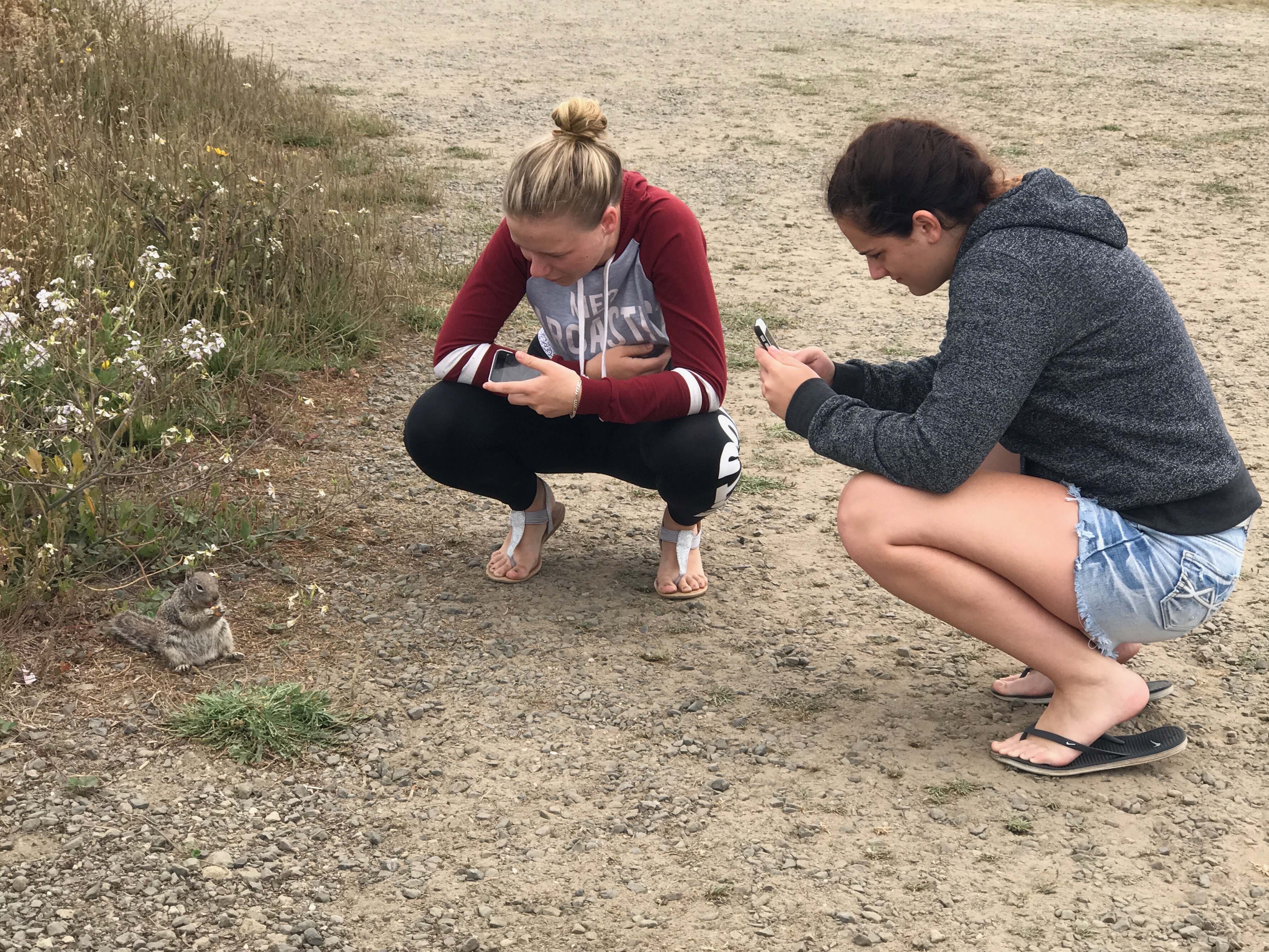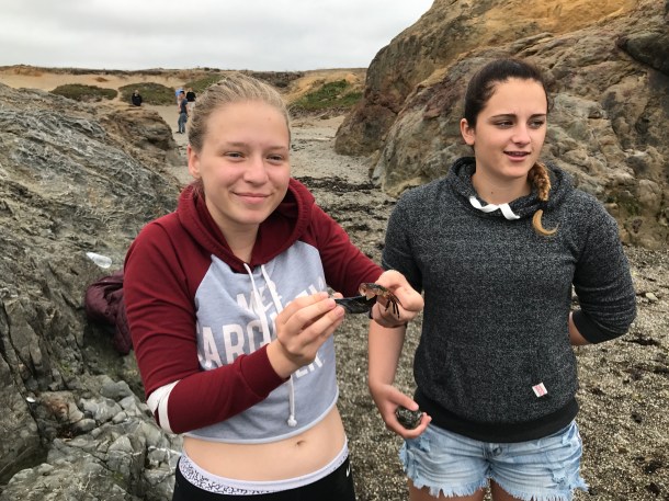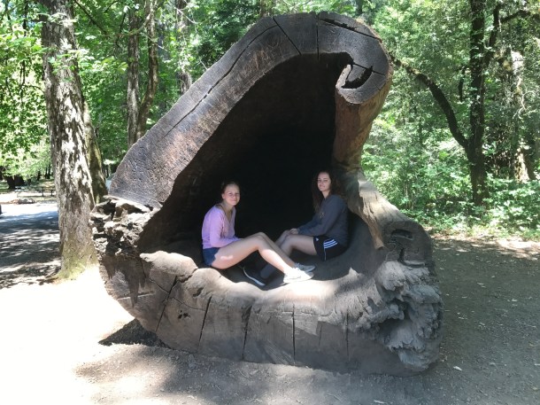 Then we stopped at the beach so the girls could spend a little more time playing. Diane and I sat in the truck and read our respective books. it was all good. When the girls finished with whatever they were doing on the rocks they made their way back to us and we continued our trip North. Since we knew it was going to be a short journey we chose to stop when the mood struck … like when we saw another one of those immense trees lurking alongside the road. Had that been the only criteria for stopping, we’d never made it to the next mile posts. There are turnouts all along the highway to allow folks to exit their vehicles to enjoy the splendor.