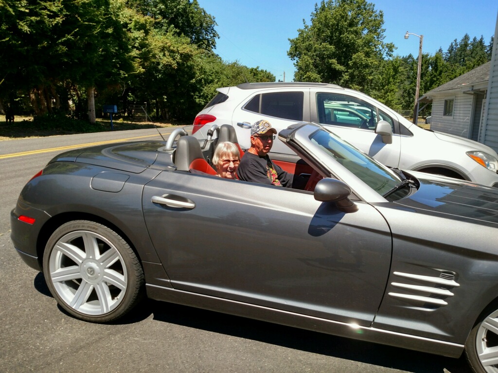 Yesterday I re-created a bit of history here in St. Helens when I took Diane’s Mom, Jean, home from the Sassy Ladies’ Estate Sale at the church. Mom will be 90 in a little over a week and she’d been at the church for a number of hours when I arrived to fix a light, and it was decided that I should take her home to a more comfortable chair. I was glad to do it, but Diane wanted me to swap cars with her so Mom wouldn’t have such a difficult time getting in and out of the Crossfire convertible. I consulted Mom on that decision and she vetoed the swap, choosing to zoom home in the hot rod.