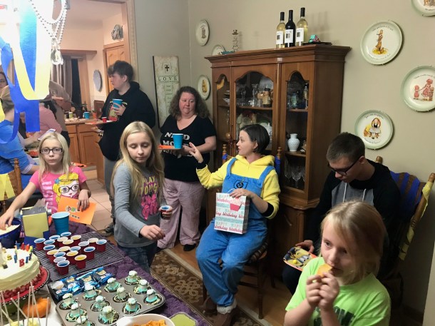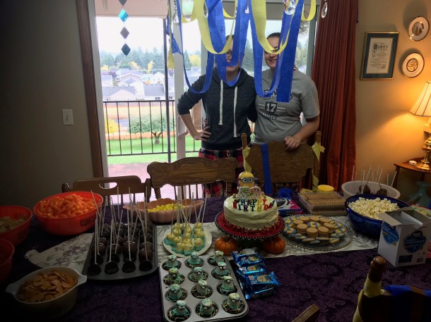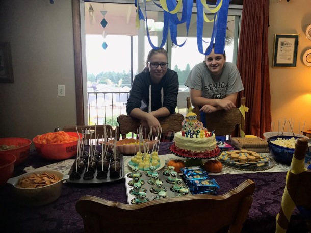 Lydia and Ceiarra spent Saturday at our house baking and making all sorts of minion stuff for a surprise birthday party they hosted for Jennie. The party wasn’t until Sunday evening because Jennie worked all day. She thought she was coming to our house for a family dinner cooked by the girls so it as a total surprise when Daniel drove her up and the place was full of strange vehicles. It was a good surprise and she had a good time. There was lots of chocolate and sugar infused delicacies galore.