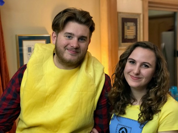 Austin and Georgie – Austin wore a banana costume and Georgie had a minion hoodie. Should have had them put up their tops.