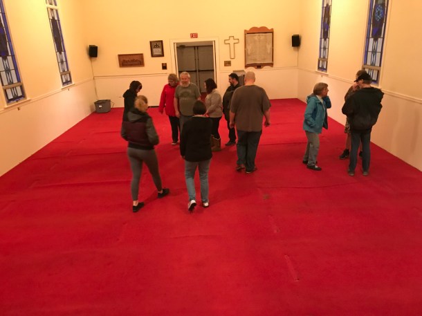 It’s a little weird to have the sanctuary empty, and it looks a lot smaller. However, if everything goes as planned, all the pews will be back in place for service this coming Sunday. How that goes will decide whether or not I show up for service on Sunday because I assume responsibility for making sure the pews are properly aligned and that all the pews are returned to their original spots to ensure that those who attend regularly get their assigned seats back. At this point I’m pretty sure I can get them lined up fairly well, but I can say with confidence that no one is getting their old pew back except by accident. It’s time for them to step out of that comfort zone and sit in someone else’s seat.
