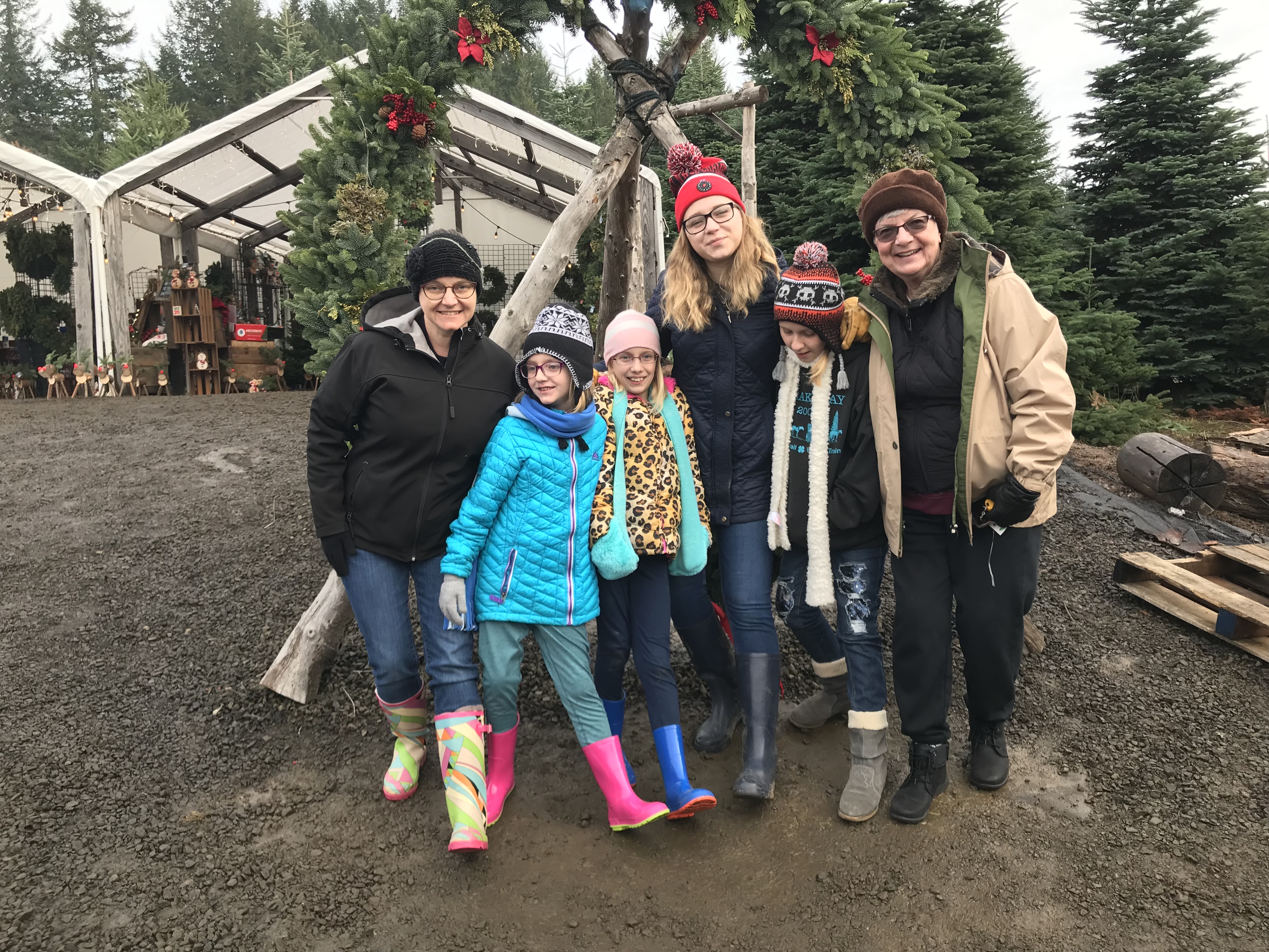 Jennie, Jerrie, Baylee, Lydia, Gilligan, Diane on Christmas Mountain