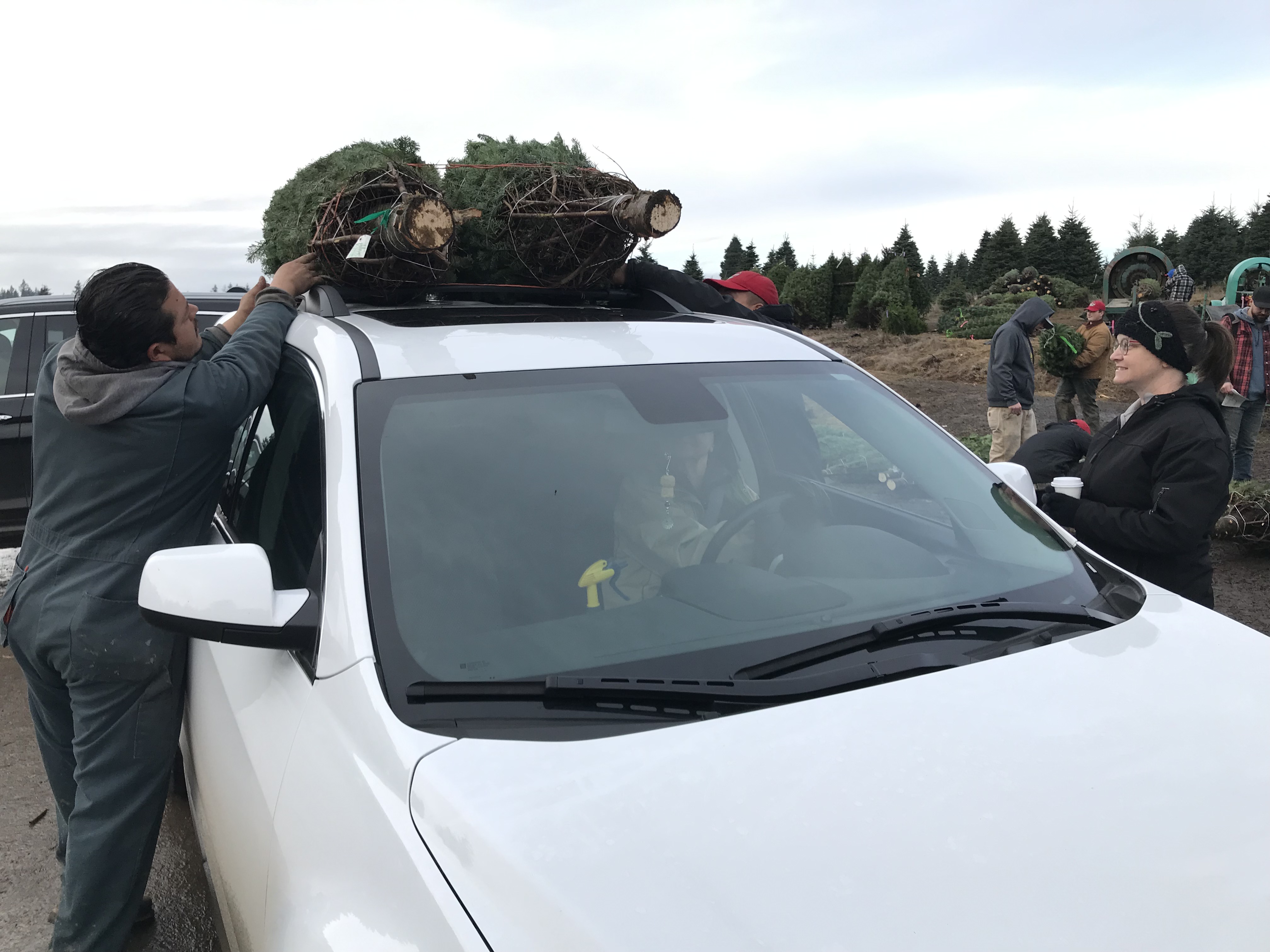 On December 8th I joined My Girls on a trip to Christmas Mountain to select trees suitable for installation in our homes. We needed two of them – one for the Walters’ home, and one for ours. Normally shoppers ride around in a tractor-pulled trailer exiting in the forest of the desired kind of tree. Then we’d tromp around in the mud, or snow, to pick out the perfect one then say a little prayer before sacrificing it with the help of a bow saw made specifically for the occasion.