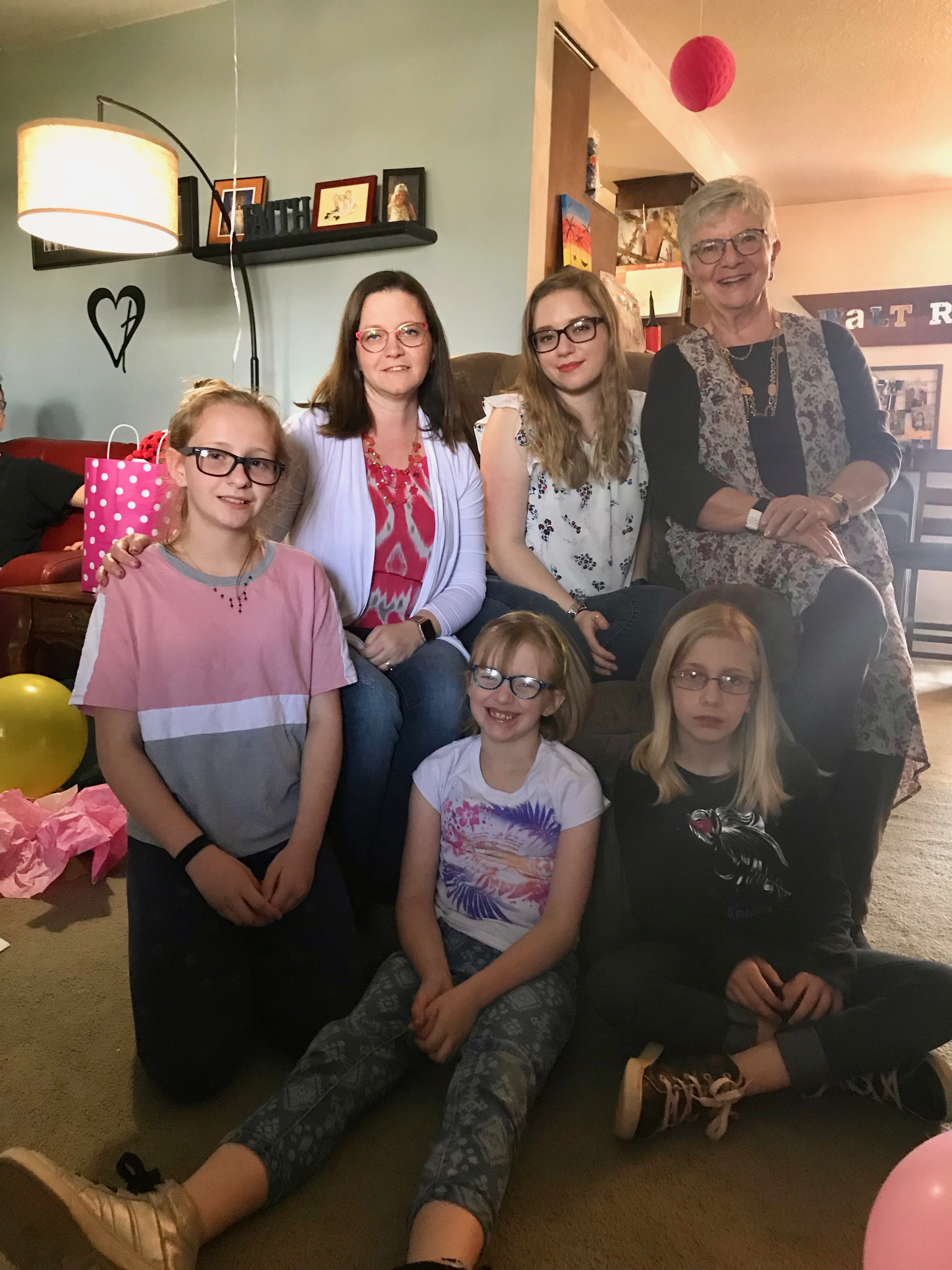 Lydia, surrounded by the family girls. Ceiarra should have been there, too, but she was in the kitchen. So all I got was Gilligan, Jennifer, Jerrie, Lydia, Diane, and Baylee