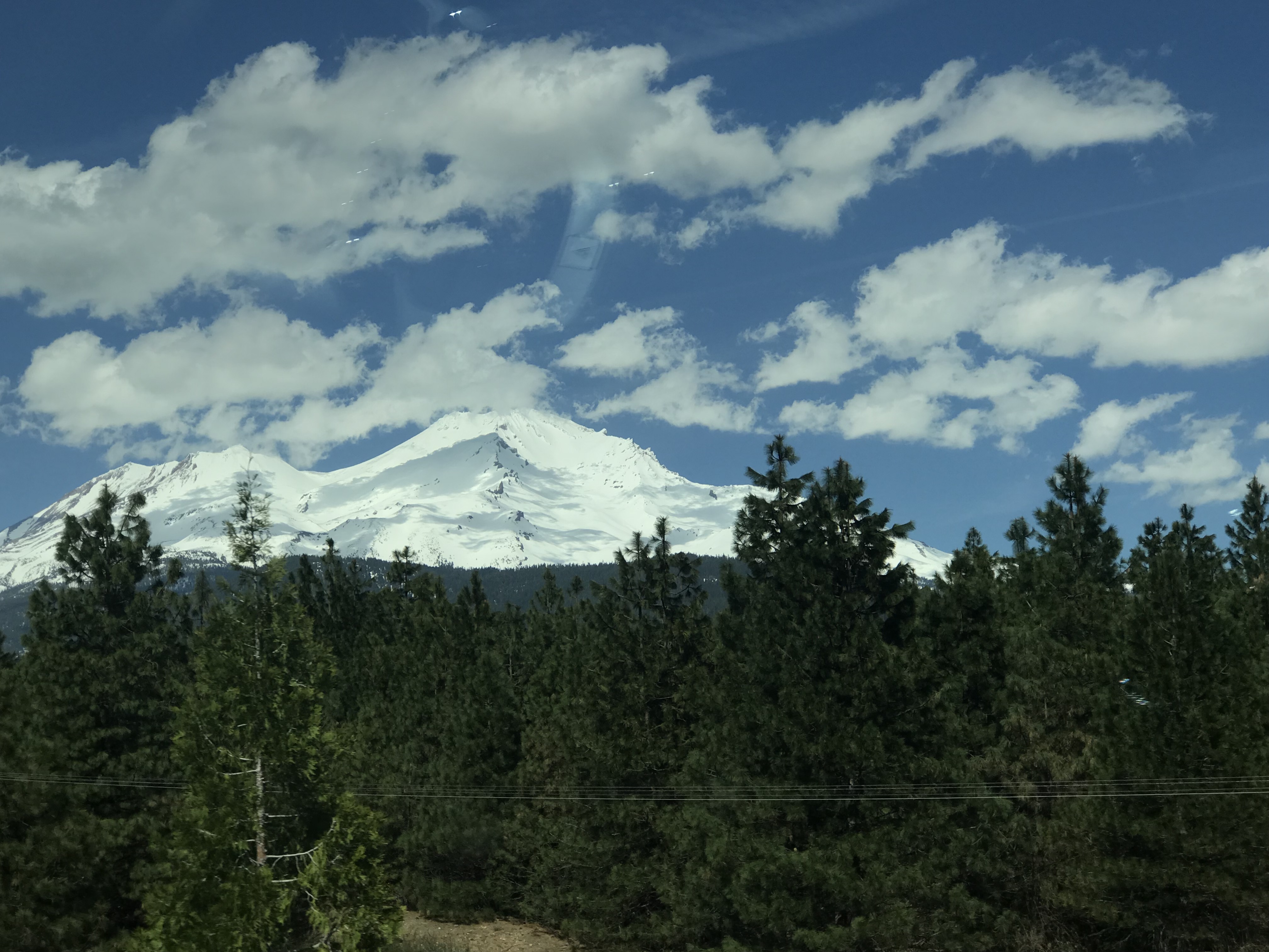 We left Modesto somewhere around 9:30 this morning and arrived at our chosen abode for the evening at 5:36 on the dot according to our GPS. Between those two significant times we traversed approximately 412 miles of mostly scenic territory that included one significant mountain, Mount Shasta, which we saw from 3 specific angles: