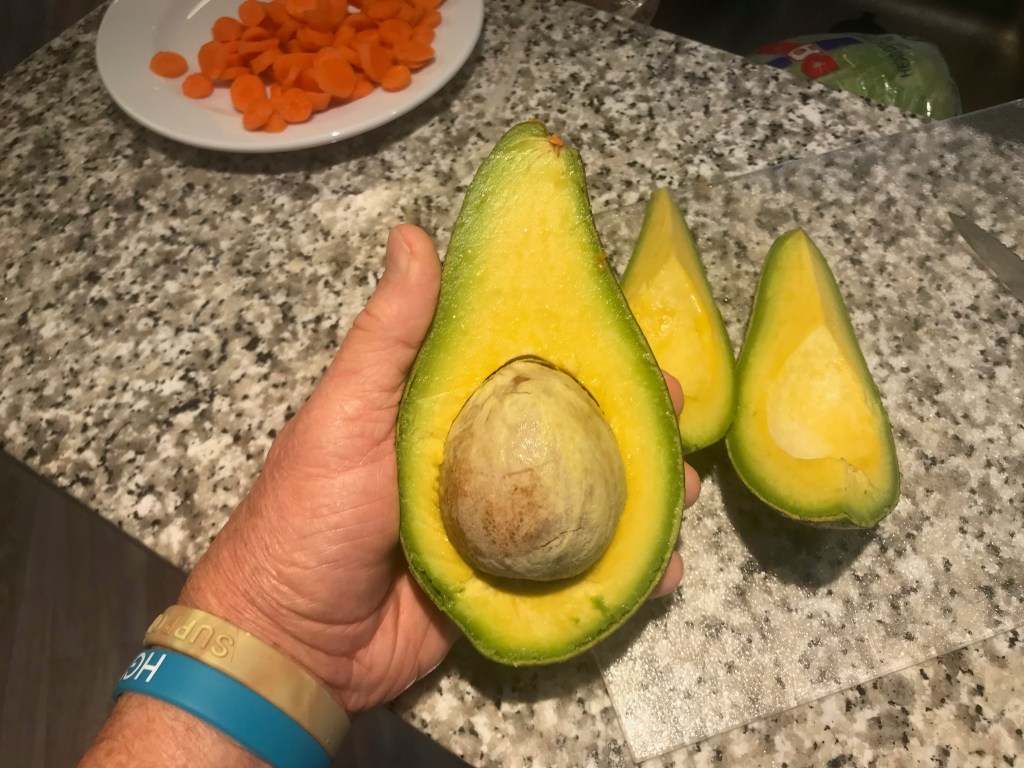 Regarding the avocado … I think it cost $1.78, or about that much. Maybe it was $1.78 a pound which would make it cost about $8.00. It’s pretty heavy. And, it tasted pretty good, too.