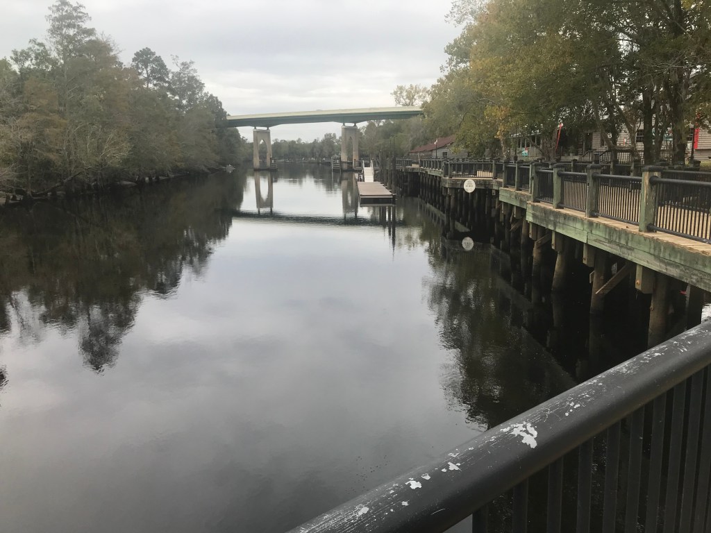 It’s not a big river walk, but it’s nice. We met a nice guy on the visit who gave us a little history about the area. My question was what makes the water black? He told us it’s the leaves from the various trees that fall in the water.