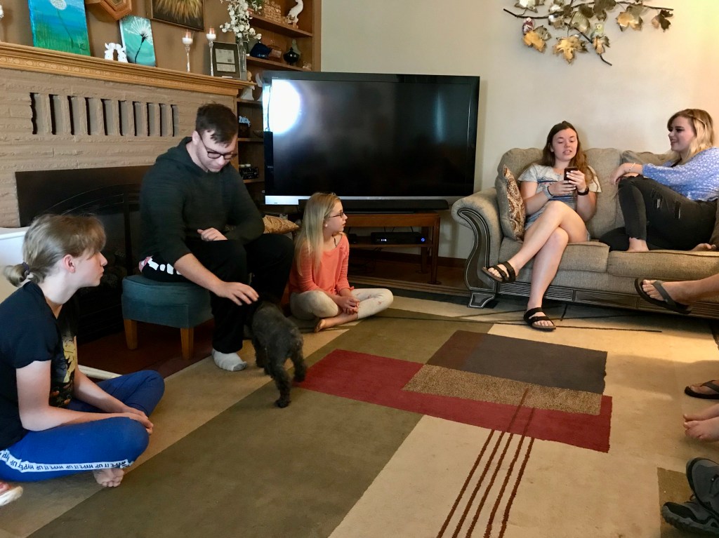 Well, it wasn’t really a reunion, more like a visit from some of our favorite relatives. That would be Bob, Steffani, and Maryssa. Making it even better, Lydia and Jeran found their way up the hill to join the fun. Hearing all the noise up stairs, Jeff, Heather, Gilligan, Baylee, and Jerrie joined the crowd. It was a busy time in the old house for a while.