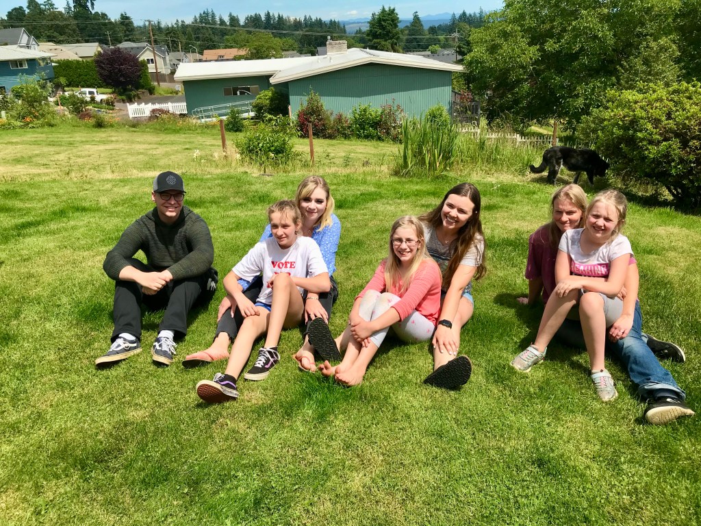 Since we don’t all get together very often a discussion was had about when the last time it happened. Thanks to modern technology, someone (Maryssa, I think) resurrected an old photo that depicts the moment. I have no idea when it was taken, but it was definitely our back yard, and all the older children were still struggling toward adulthood.