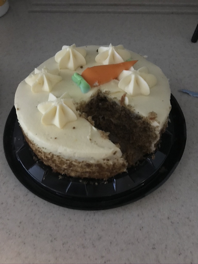 As she always does, Diane brought along a small carrot cake. We both really like carrot cake. I didn’t take a piece when she was cutting hers so was surprised to find this when I felt it was time:
