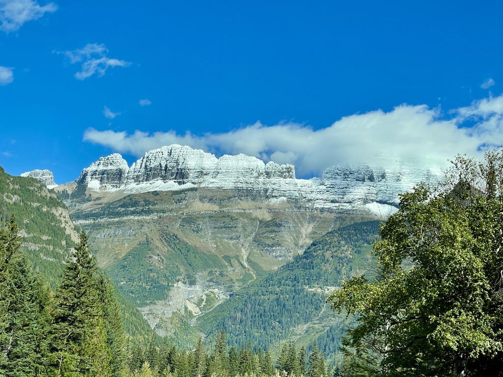 Once we entered the Glacier National Park the road quickly narrowed making progress difficult at times. Like when someone in a very large pickup is coming at you and he’s crowding the center line because he doesn’t want to snap his mirror off on the sheer rock wall to his right. Adding to the that, I think the pickups in Montana are bigger than in other states. And, most of them have diesel engines and the drivers like to show you how loud they can be when they stomp on the gas going by the Elks Lodge. That’s where we’re staying, the Elks Lodge in Kalispell, Montana.