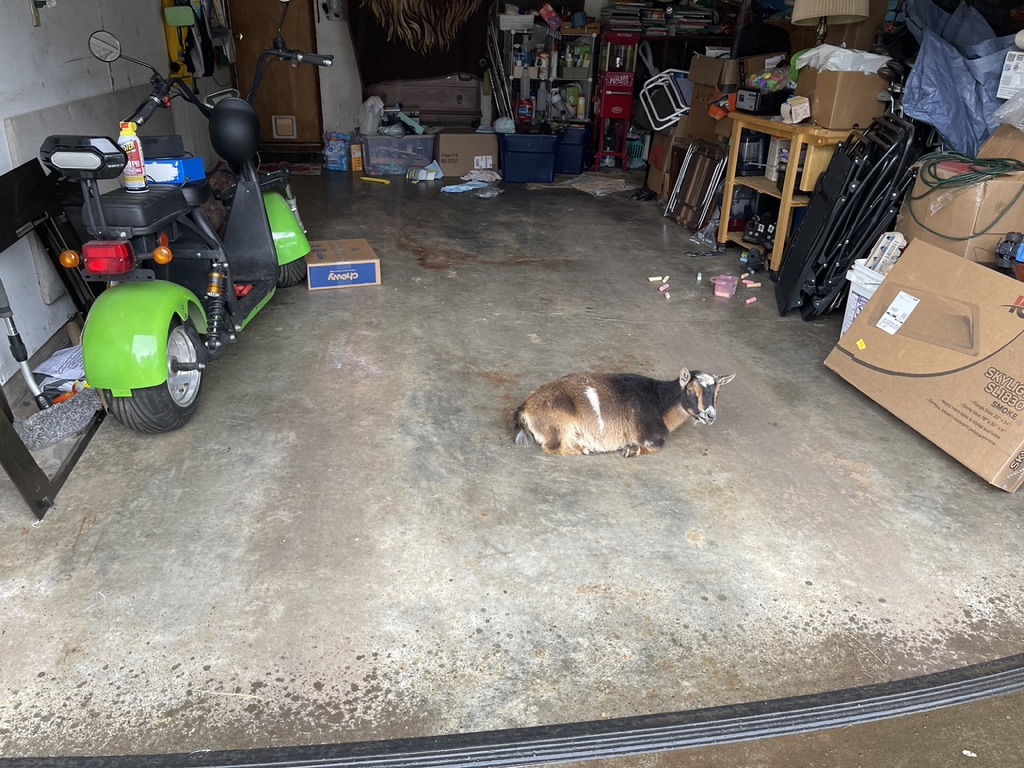 The fire was so hot the aluminum window frames melted into puddles. That’s Gabby the goat, in case you’re wondering.