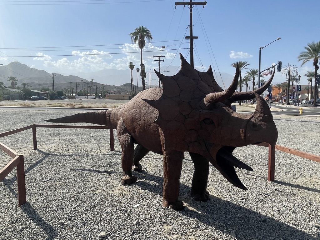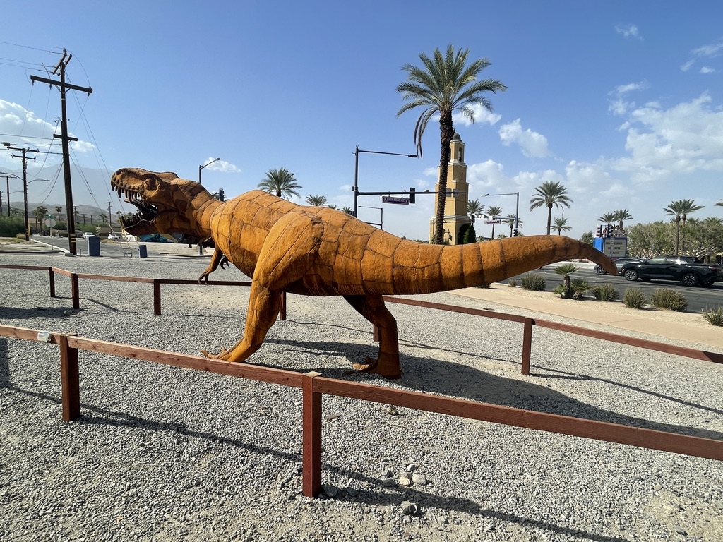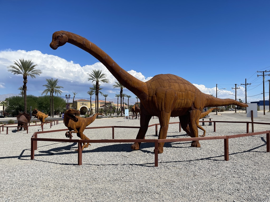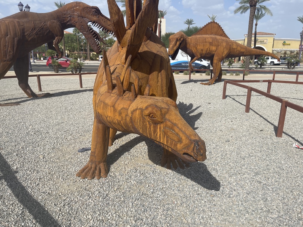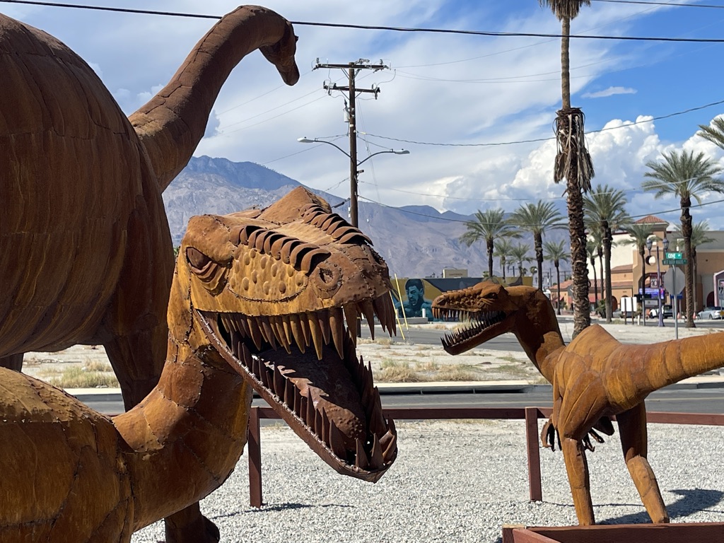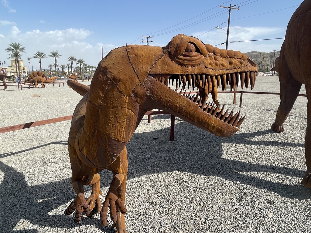 Along one of the streets Palm Springs is a very large lot that hosts a display of about 17 dinosaurs made out of metal. Knowing that there are some little people in our family who really like those things. So, this is for them, and for everyone else who find joy in these critters. All I have are photos for this. No narrative.