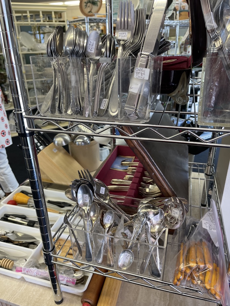 See what I mean? Amazing. The china cabinet in the first pic was on sale for $75. Neck ties and belts for $2, and silverware. I didn’t look at the prices because all I could think about was how excited Cliff would be to search through them.
