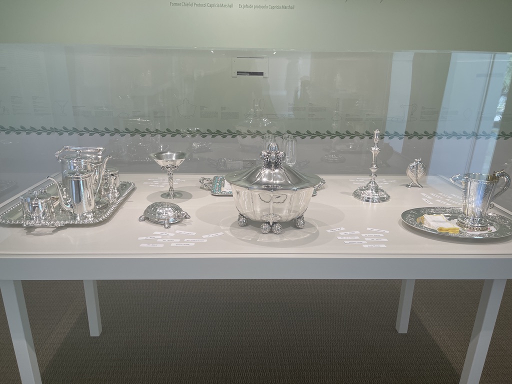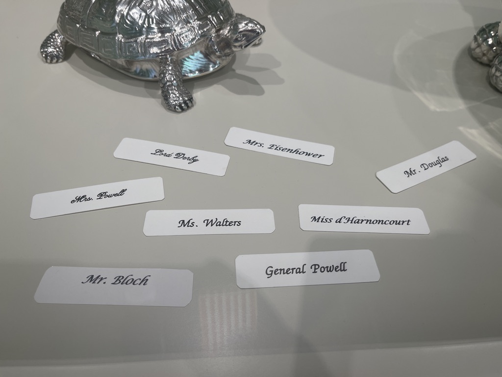 This display of silver caught my eye because of the name cards …