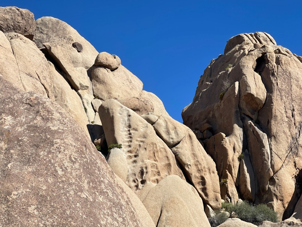 Today I got up at 0500 so I could excitedly anticipate our pending visit to Joshua Tree National Park. There are three entrances to the park from Highway 62 on the north side, and another on the south side from I-10. Since we wanted to see the village of Joshua Tree. Also, the Marine Base at 29 Palms was a place we wanted to go because we like to visit any military base we can. So, we drove west on I-10 then headed up Highway 62 to Joshua Tree where we stopped at an iHop for breakfast. After ordering our food it took almost an hour for them to produce our food, but we were talking the entire time and didn’t complain. Because of our good nature, the wait staff was pretty amazed that we didn’t throw a hissy-fit about the wait, but we were busy talking about “stuff” and didn’t really notice. For our good nature, they gave us the coffee for free. We thought that was quite nice even though we were more than happy to just go with the flow. It’s Sunday, after all, and everyone showed up at iHop for lunch after church. They were really busy.