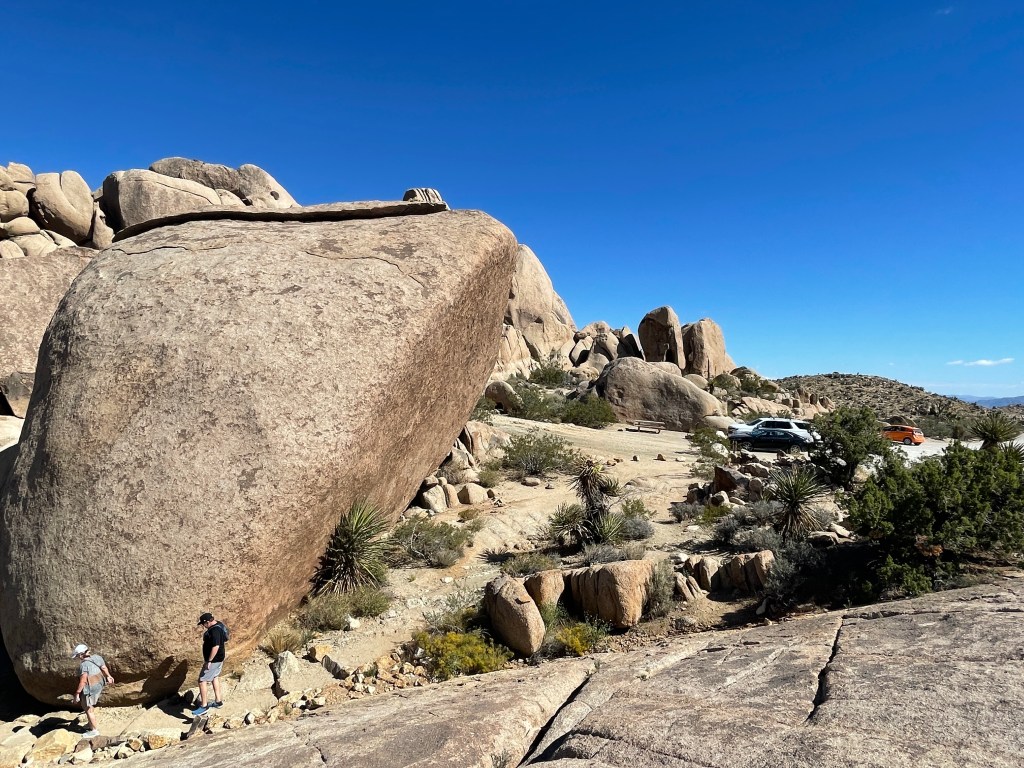 When we drove off the base we continued straight south into the State Park. The change in the landscape was amazing. The rock structures were fascinating. The Joshua trees turned into a forest that filled all the open space between huge piles of rocks that appeared to have been strewn haphazardly by a giant.