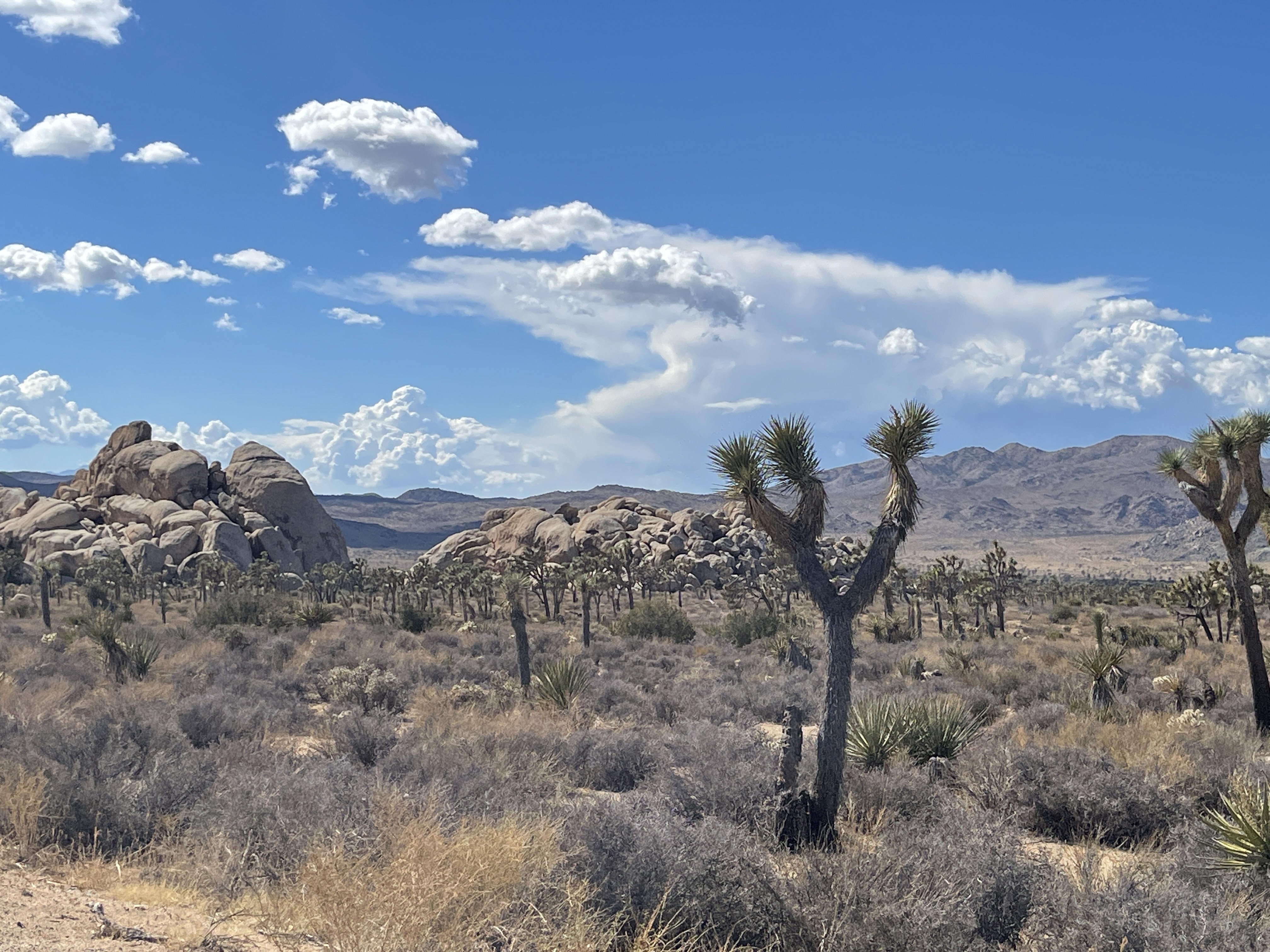 On our way north, we passed through the little town of Joshua Tree on Highway 62. As we headed up into the mountains I kept getting these annoying flash flood warnings. Never got any of those before so I wasn’t overly alarmed. There were clouds scattered around, but being from Oregon they don’t scare me at all. Shortly before getting to Yucca Valley we were peppered with some rain which was nice, actually. We like rain. It’s refreshing. Clears the air.