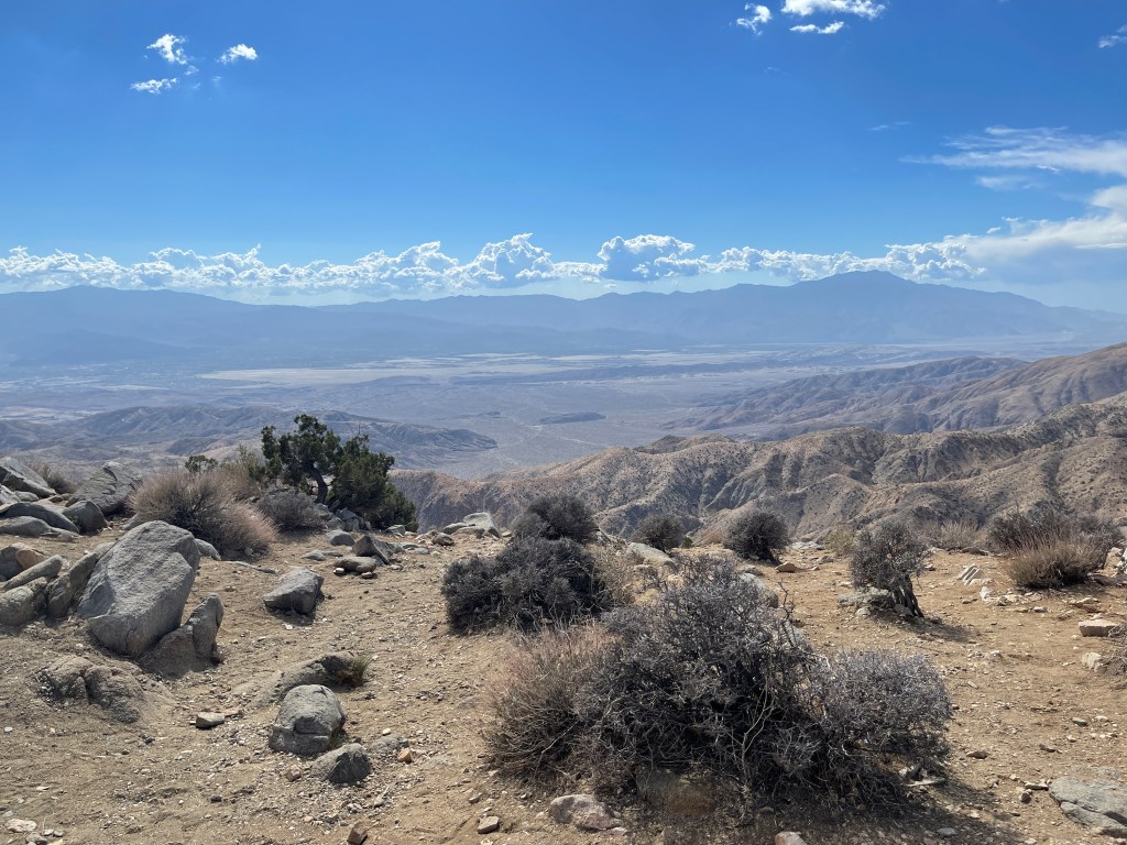 I think you get the idea. That last photo was taken at a location that overlooks the valley in which Palm Springs is snuggled. It’s right below Mt. San Jacinto, elevation 10,833 feet, the mountain on the right.