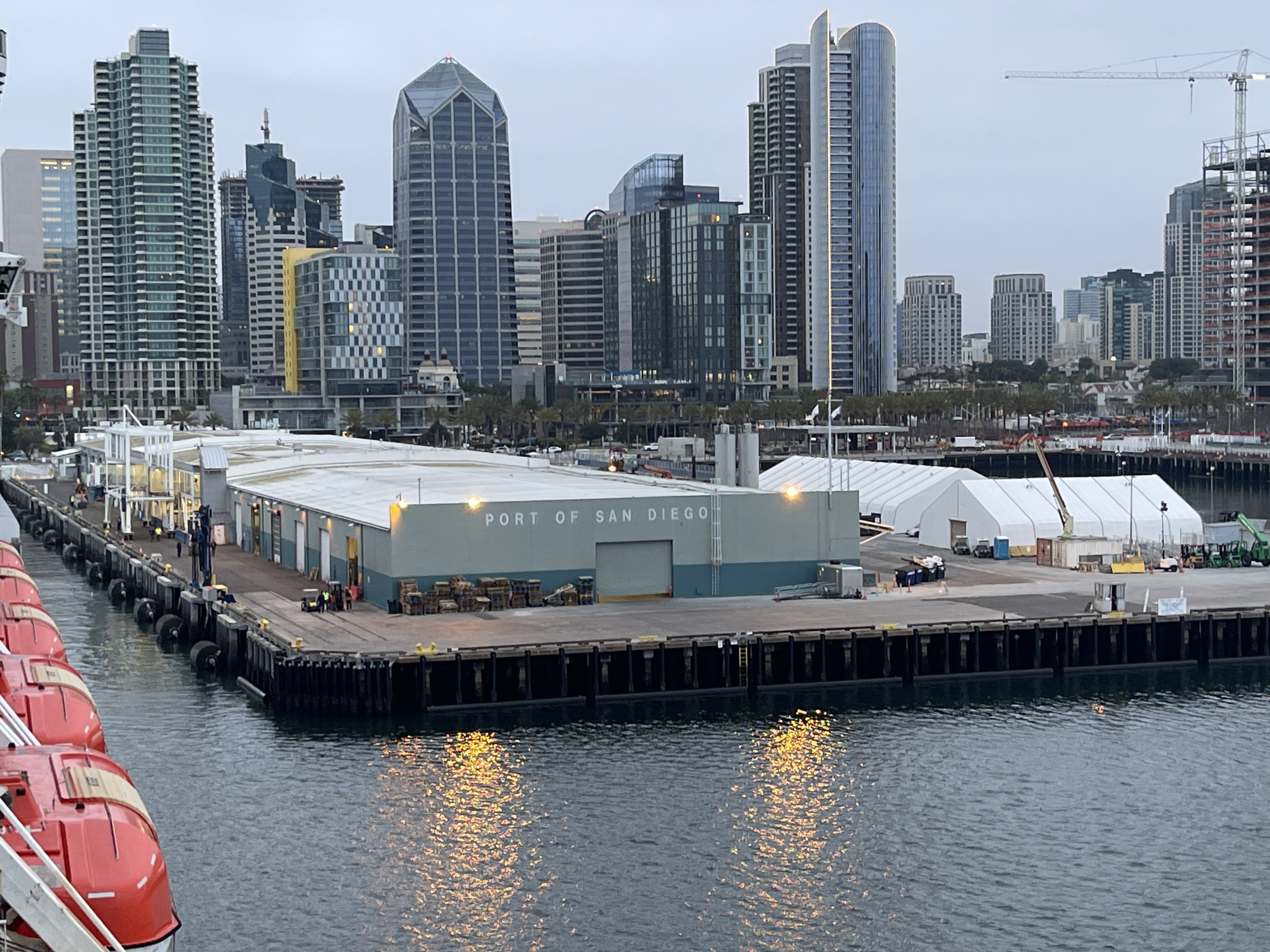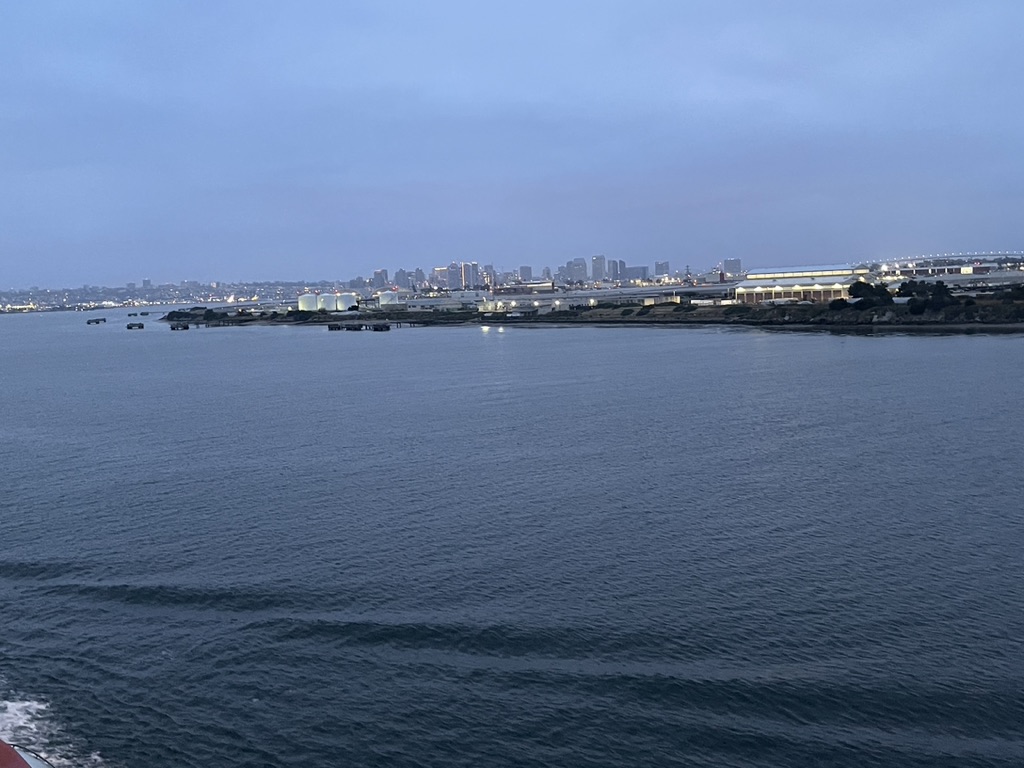 Arrived 0530 a couple of miles off Coronado Island. The first thing I saw outside was the Pilot boat pulling away from the ship meaning we’re on our way into San Diego.