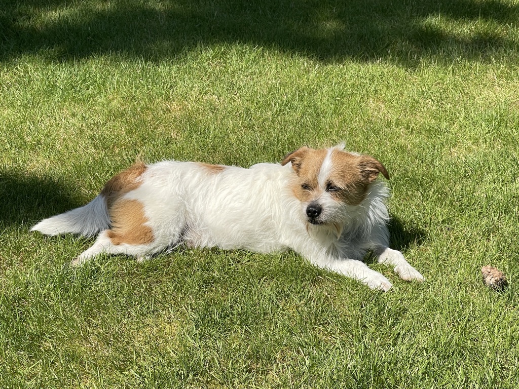 As you can see he’s very busy. What you don’t see is how fast he can run. He’s like the wind and likes to run willy nilly around the yard seeing how close he can come to people before dodging away to make another circuit. There’s no photo of this activity yet because we’re never ready for it. This is what he looks like when he’s done.