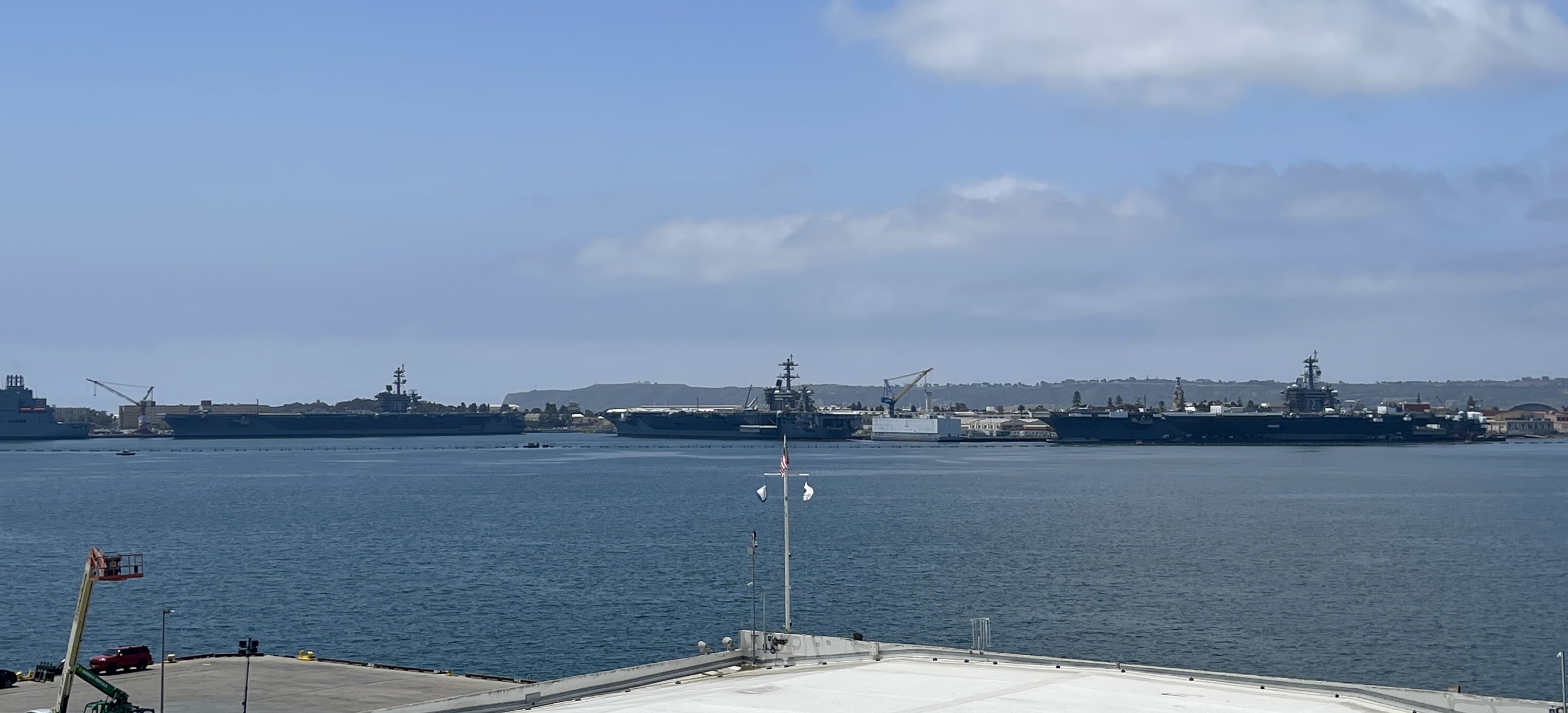 There were three aircraft carriers in port at Coronado Island, all being worked on for one reason or another: USS Carl Vinson CVN-70, USS Ronald Reagan CVN-76, USS Abraham Lincoln CVN-76, CVN-72.