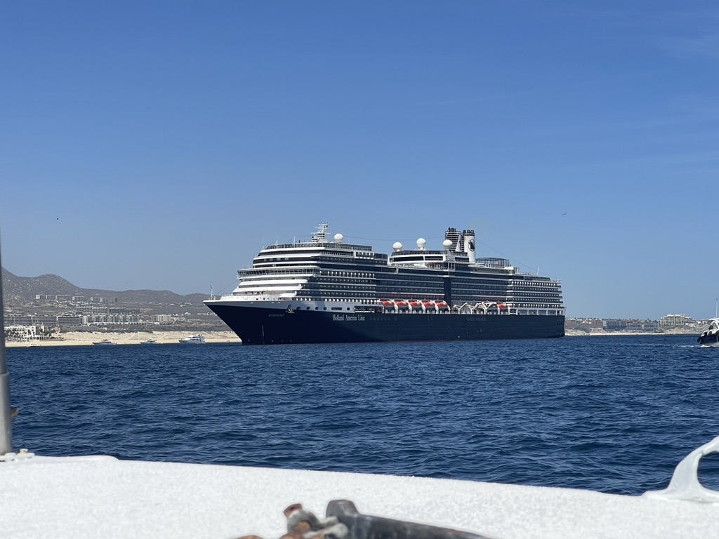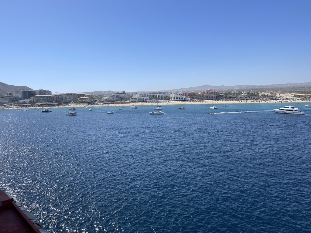 We ‘live’ on the right, or starboard side of the ship so the sail away from Cabo was right in front of us. The driver spun this big ship around and sailed straight out for about a mile, then made that right turn slowly so we could all see the lands’ end where the Baja Peninsula meets the sea. The arch that’s revealed as we pulled out was right where it’s supposed to be.