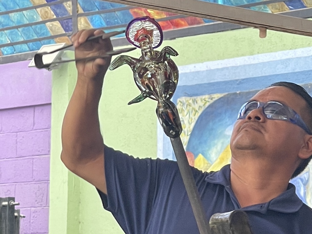 Once the turtle was done, he held it up for all to see, then took a peso note and touched it to the finished product and it burst into flame. A demonstration of how hot it was.
