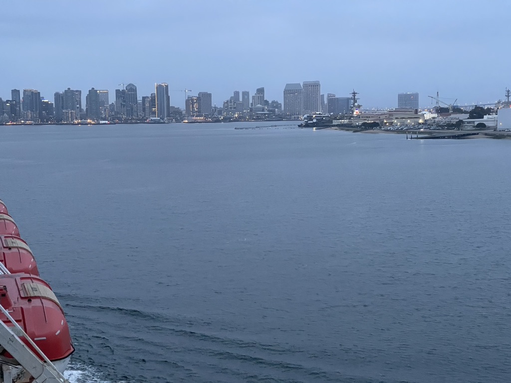 The ship pulled out of San Diego while we were napping so we missed the sail away past Point Loma. That was OK as that’s a trip I’ve taken many times in my past life in the Navy.