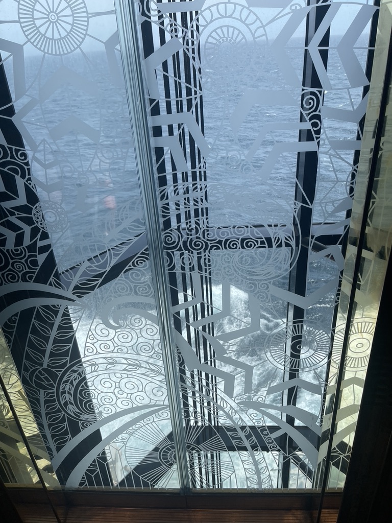 Here’s something fun. There are four outboard elevators that have an ocean view. What fun.