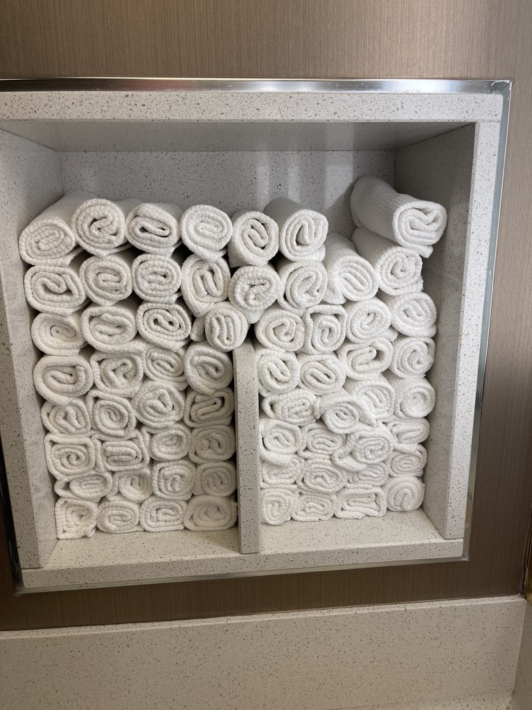 On the way I stopped at one of the public restrooms and learned that they don’t have paper towels. Interesting. No, they roll real, little towels up instead. Nifty.