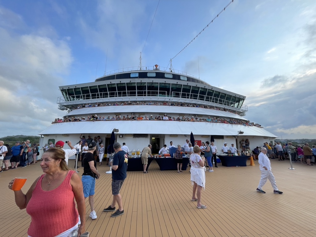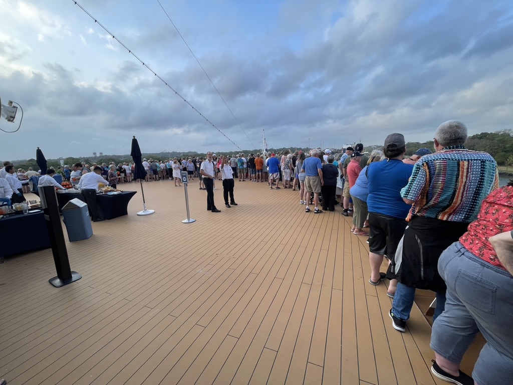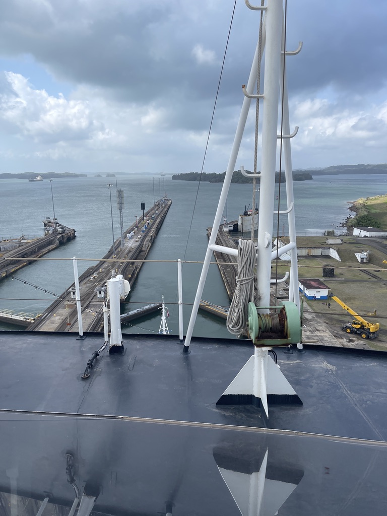 The pointy end of the ship was opened to all passengers for the transit so everyone could have a good look at the process. Normally, this part of the ship is inaccessible while underway. I’m sure that has something to do with free flowing alcohol and the penchant of those who imbibe to not be careful. It’s a pretty fair drop from the main deck to the water and should one fall, it would definitely leave a mark. I speak from experience.