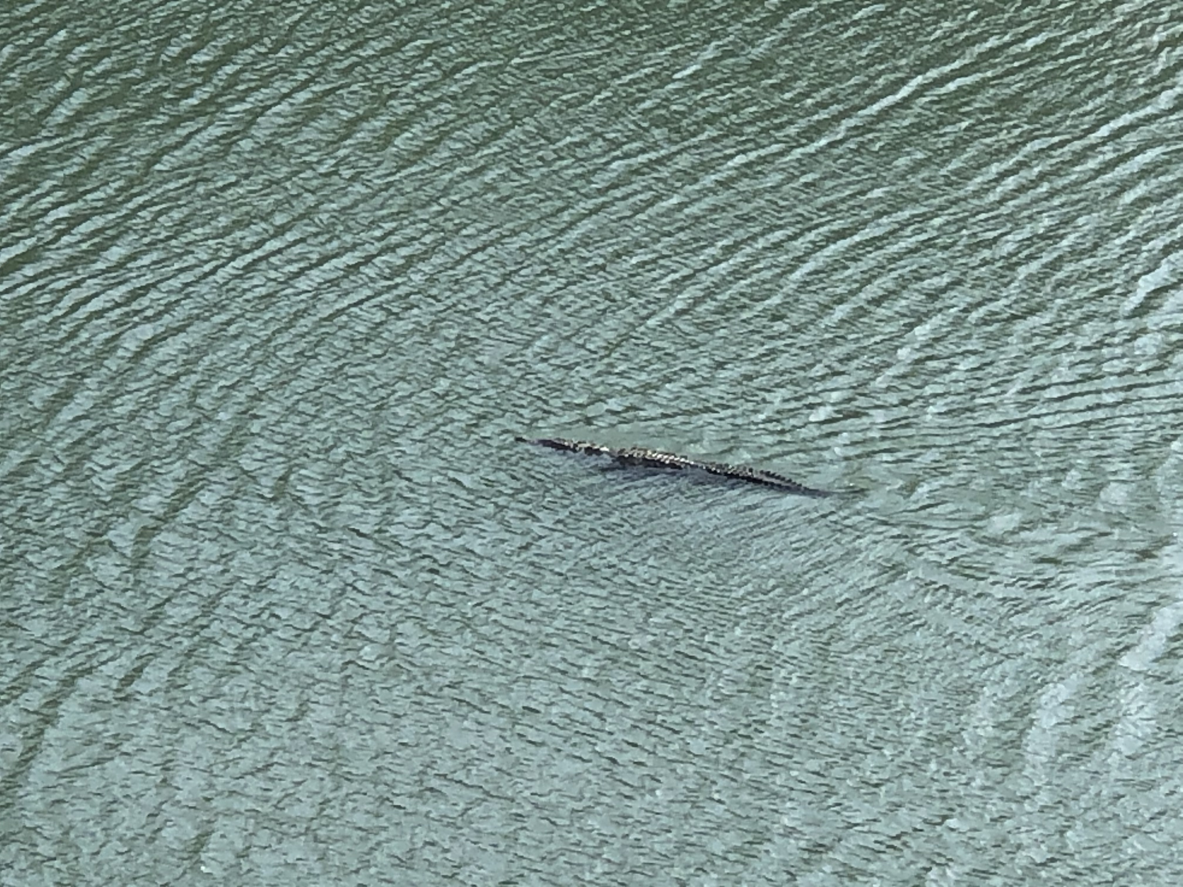 We exited the Miraflores at 1630. Upon leaving the last lock I saw, and photographed, either an alligator or a crocodile whimsically swimming in the lock exit next to us. He appeared to be right at home.