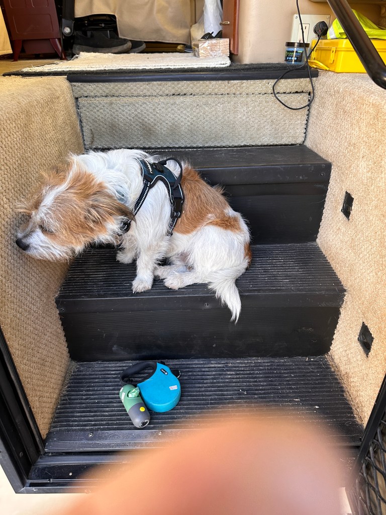 When the ambulance arrived we were allowed to head on down so we could return ‘home’. We stopped in Hurricane so Max could run free in a nice dog park they have. It’s really nice and he had a great time. Only one other dog showed up to play with him and he ignored her. Spent pretty much all his time smelling every inch of fencing, every rock and tree, and bush instead. Making friends wasn’t on his itinerary.