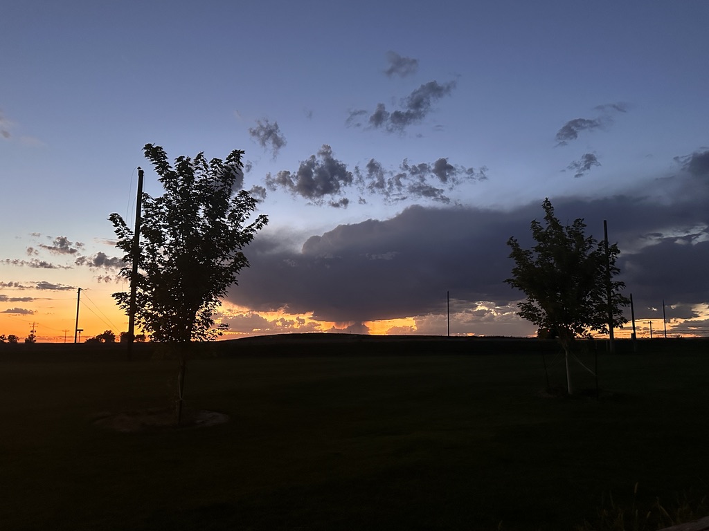 After a nice steak dinner, we gathered outside to watch the beautiful sunset. We stayed long enough to watch it morph into a spectacular thunder and lightning storm that was about 20-30 miles away. That’s a guess, of course, but it’s pretty flat here and we can see a long way.